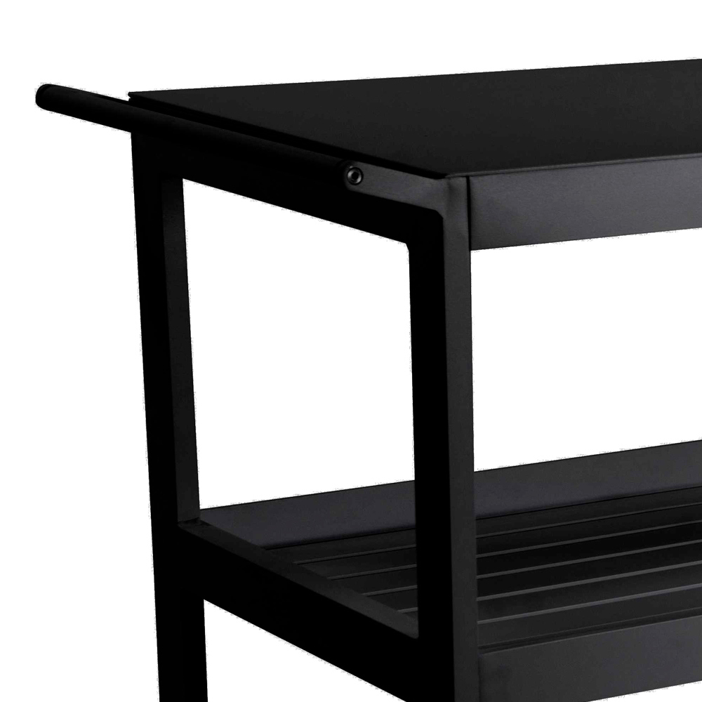 Le chariot comporte trois étagères spacieuses, parfaites pour ranger des boissons, de la vaisselle ou des plantes, ce qui le rend idéal pour recevoir des invités ou comme support supplémentaire dans n'importe quel espace extérieur. Grâce à ses roues robustes , il peut être facilement déplacé là où il est nécessaire, ce qui le rend extrêmement pratique et polyvalent.