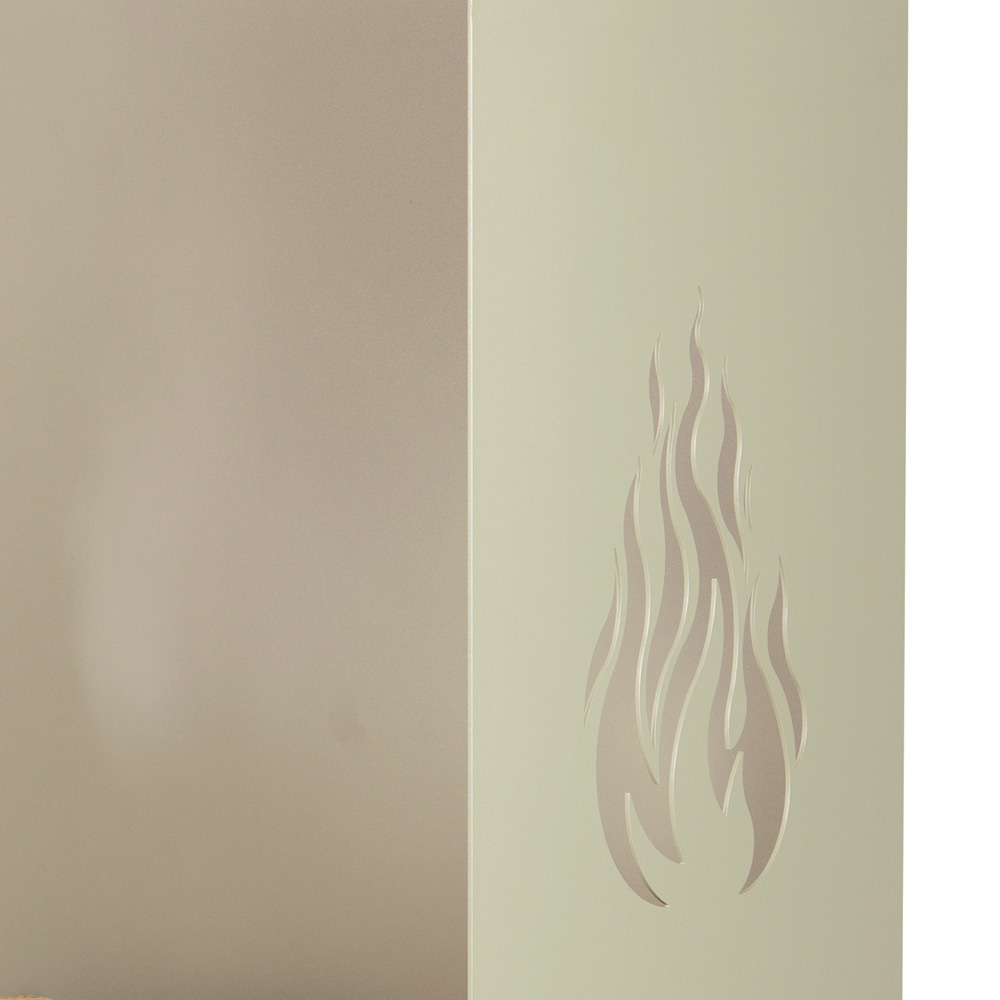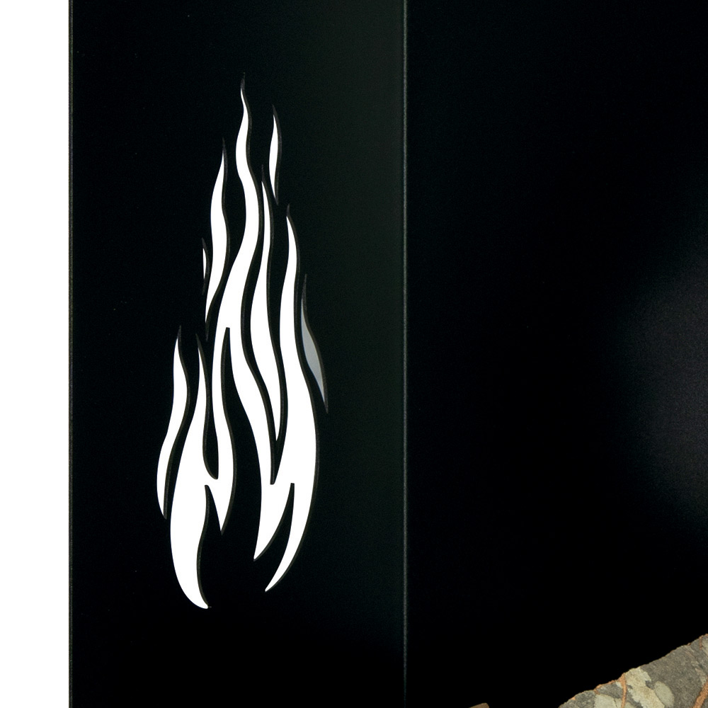 Ce porte-bûches en métal est une combinaison parfaite entre esthétique et praticité , un objet indispensable pour les amoureux de la cheminée traditionnelle. Le design est moderne et robuste , avec des motifs de flammes des deux côtés, qui non seulement embellissent la pièce mais permettent également de voir le bois stocké à l'intérieur, suggérant immédiatement sa fonction.