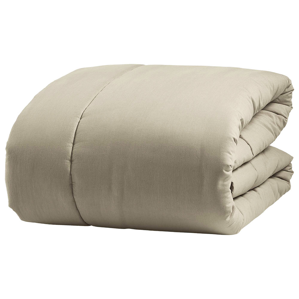 Couvre-lit double 350 gr/m2 en pur coton teint dans le vêtement. Rembourrage intérieur en ouate de résine hypoallergénique. Le