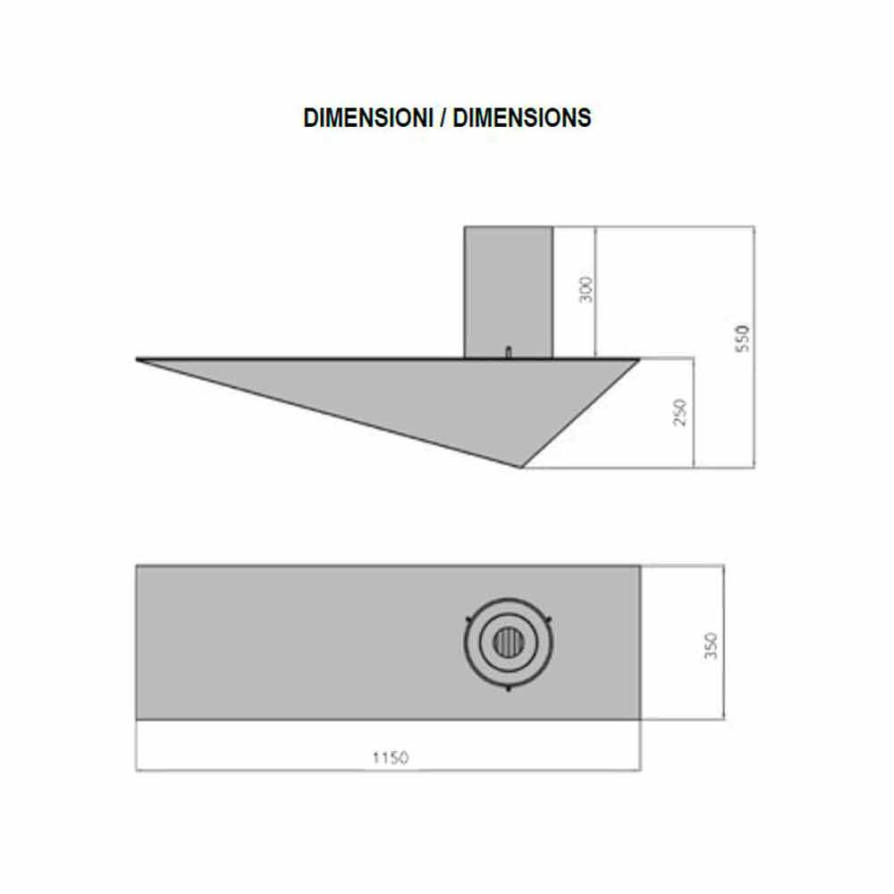 Cheminée bioéthanol murale en acier, design intérieur moderne et irrégulier, fabriquée en Italie.