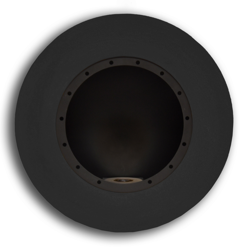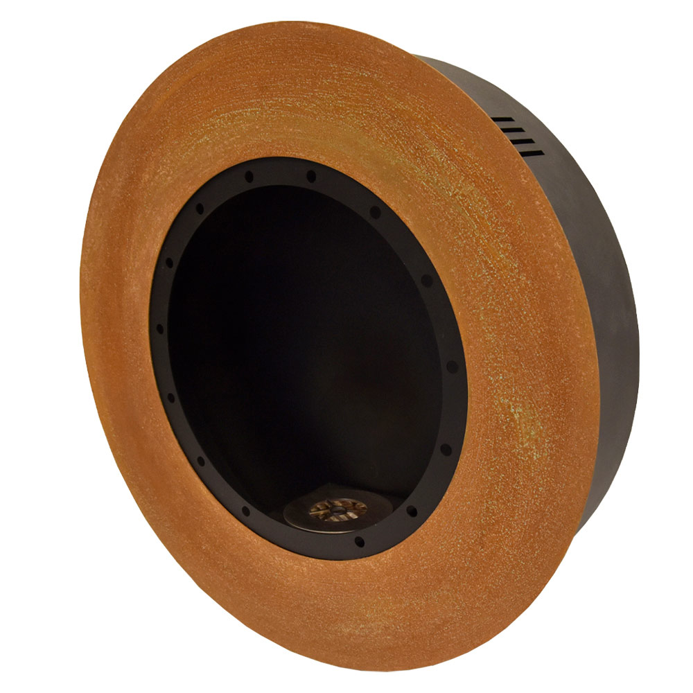 Bio-cheminée murale de design moderne et rond en acier, fabriquée en Italie.