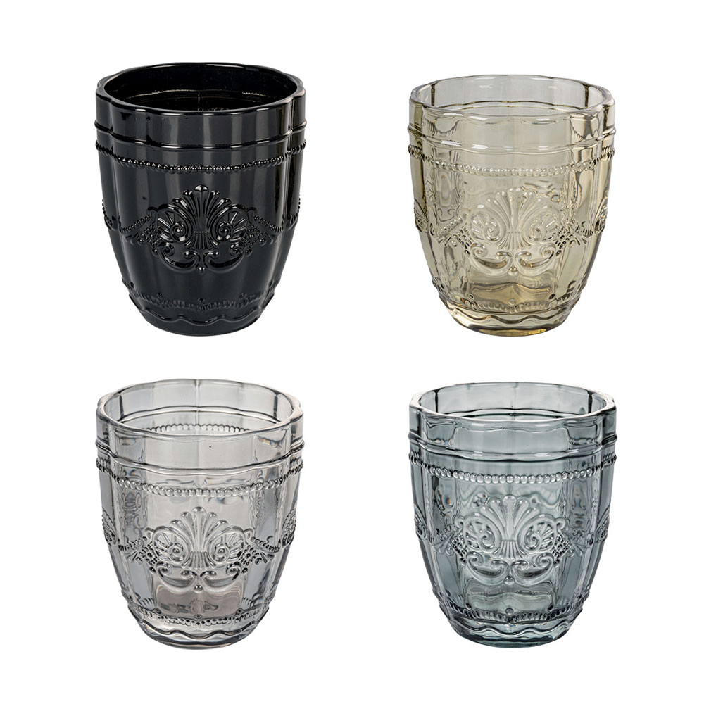 Ce lot de 12 verres est un triomphe de lumière et de couleur , avec des nuances chaudes qui rappellent les merveilles de la nature et les paysages d'automne. Chaque verre est une petite œuvre d'art qui apporte la chaleur de la couleur. Gravés de motifs évoquant des ornements floraux d'époques révolues, ces verres ajoutent une touche d' élégance classique à n'importe quelle table, célébrant la tradition du design .