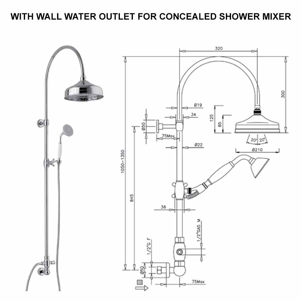 Colonne de douche en laiton avec pomme de douche ronde et douchette antique Fabriqué en Italie.