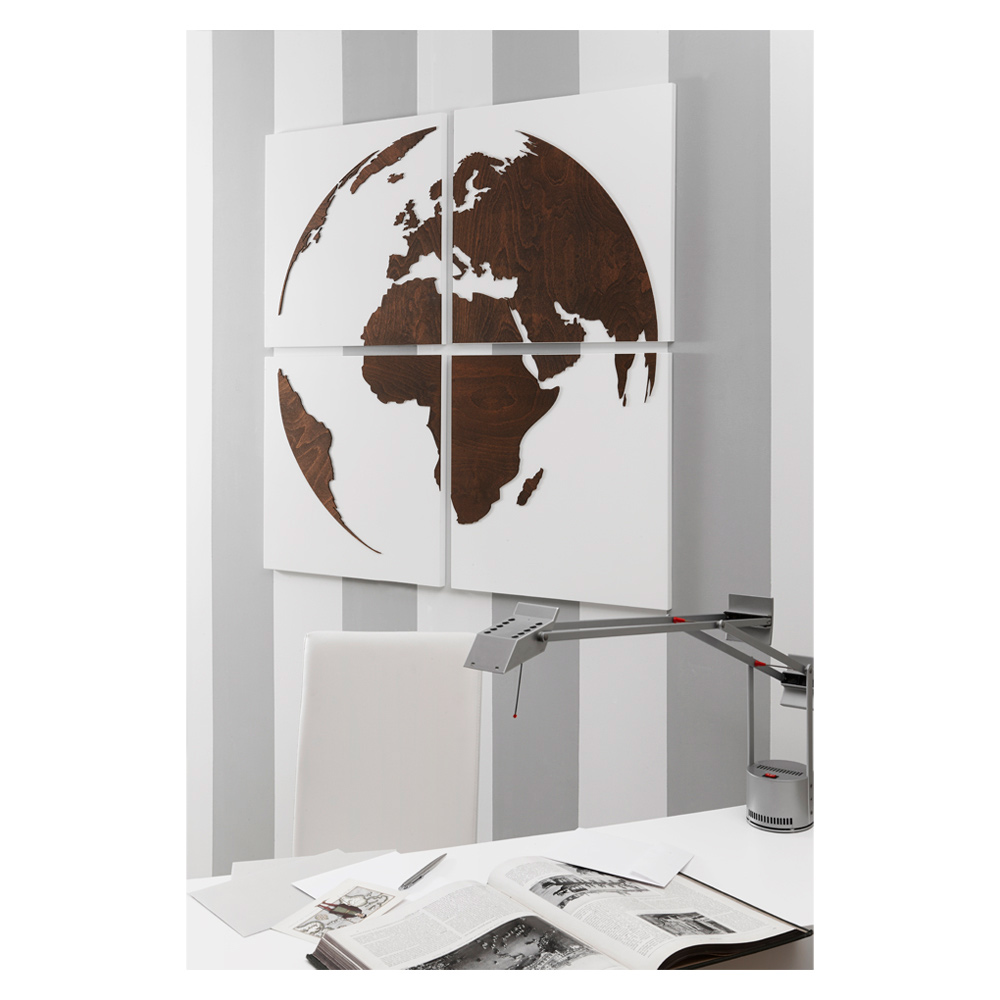 Composition représentant le monde en bois blanc mat et décor appliqué en bois wengé.