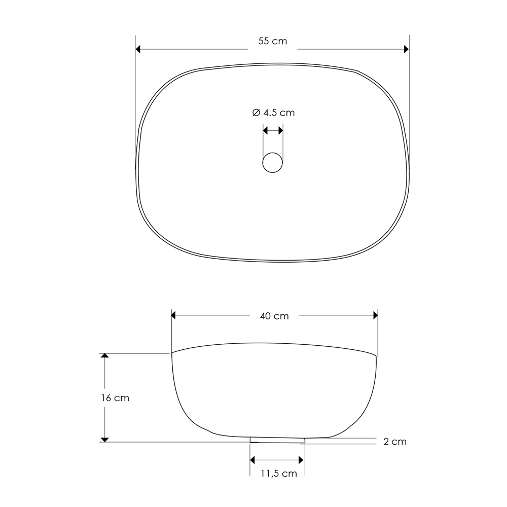 - lavabo - diamètre 55 x P 40 x H 16 cm ;