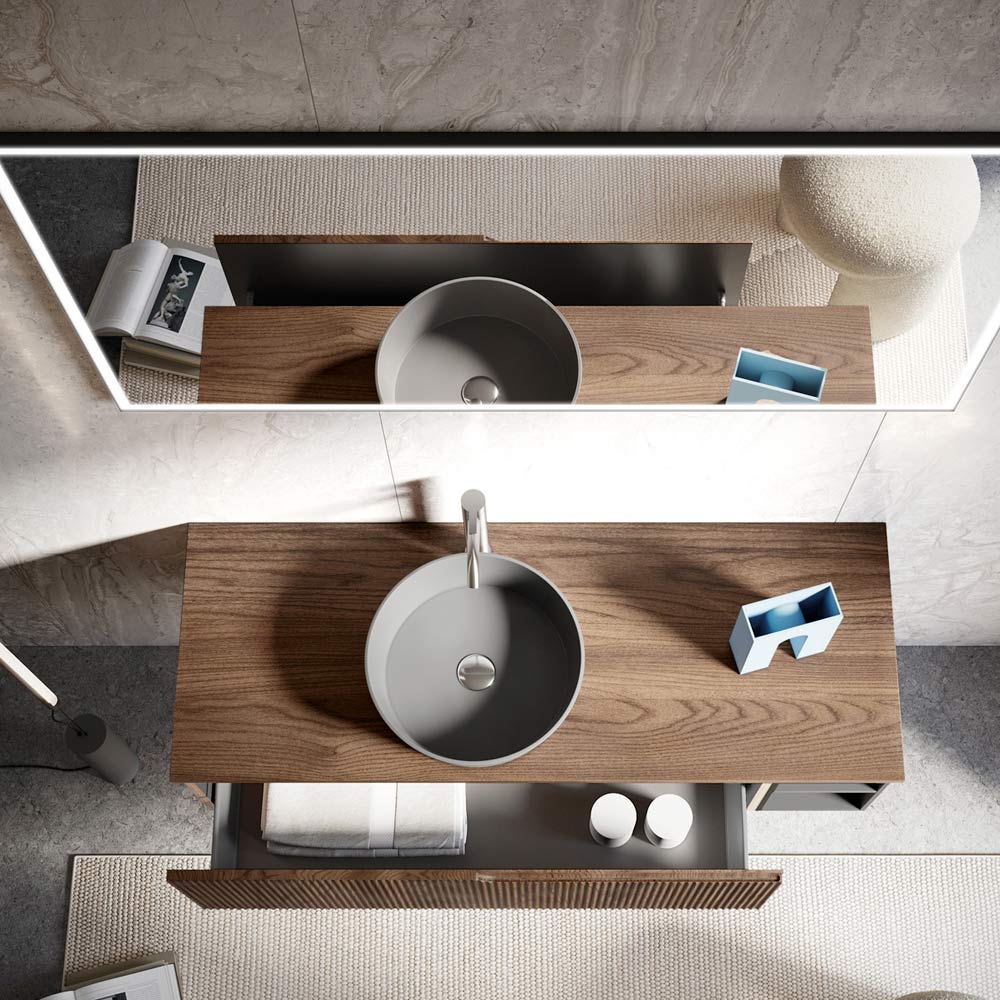 Composition de salle de bain en chêne nervuré et compartiment ouvert Made in Italy - Febe