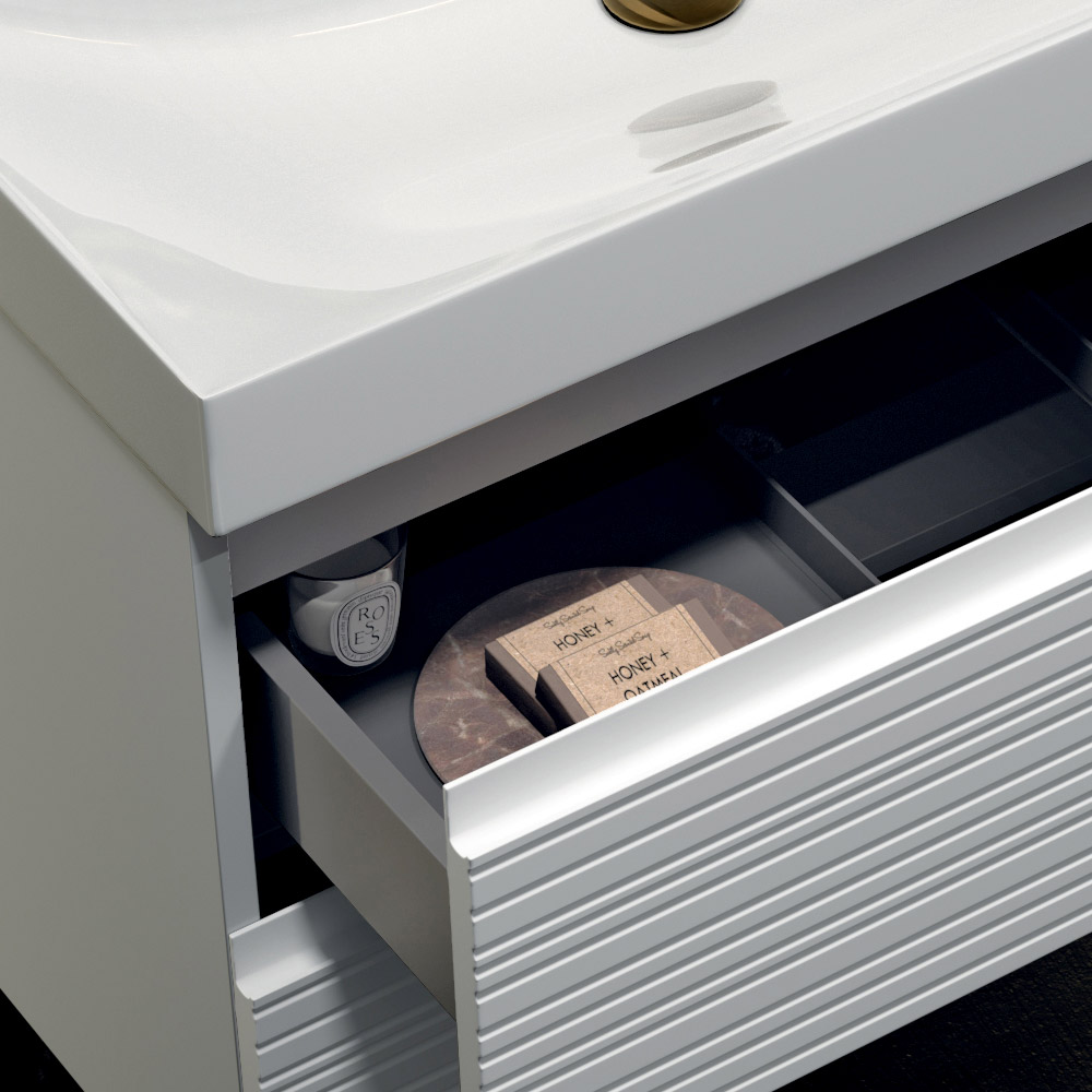 Une solution d'ameublement design pour salle de bains, conçue pour ceux qui recherchent un style contemporain, minimaliste et sophistiqué, capable de transformer la salle de bains en un espace exclusif doté d'une grande personnalité.