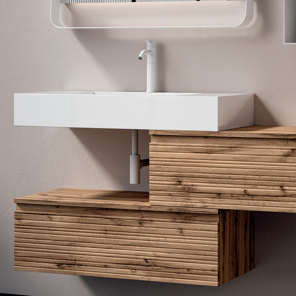 Une proposition de mobilier de salle de bains design conçue pour ceux qui désirent un style élégant, contemporain et hautement fonctionnel, avec des matériaux sélectionnés et une attention méticuleuse aux détails.