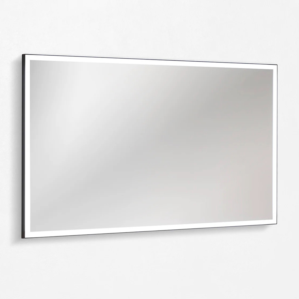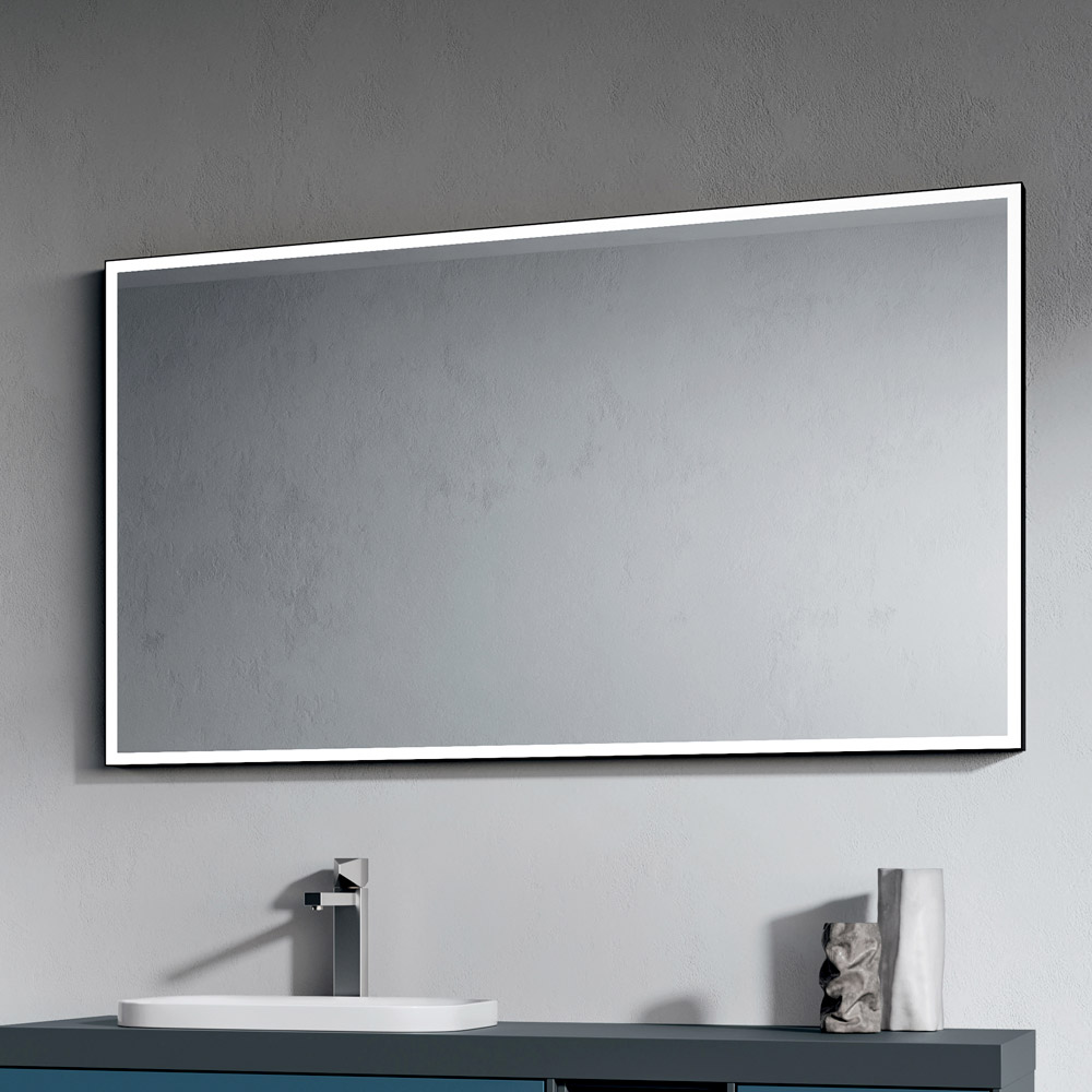 Le miroir LED noir mat 120x70 complète l'ensemble, une présence élégante et minimaliste qui met en valeur l'éclairage de la salle de bain et contribue à créer une atmosphère sophistiquée et contemporaine.