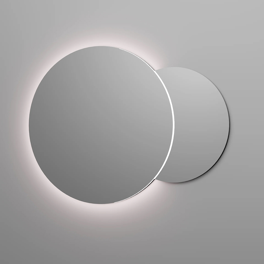 Les deux miroirs rétroéclairés amplifient la luminosité de l'espace, créant une atmosphère sophistiquée et enveloppante. L'éclairage intégré souligne les volumes et contribue à un espace moderne et fonctionnel.