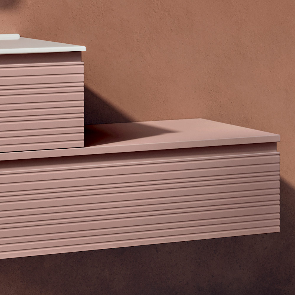 Ce meuble de salle de bains suspendu rose poudré , doté de 2 tiroirs spacieux, allie fonctionnalité et style, offrant une solution de rangement essentielle ornée d'une finition mate douce et sophistiquée, idéale pour les salles de bains modernes et lumineuses.