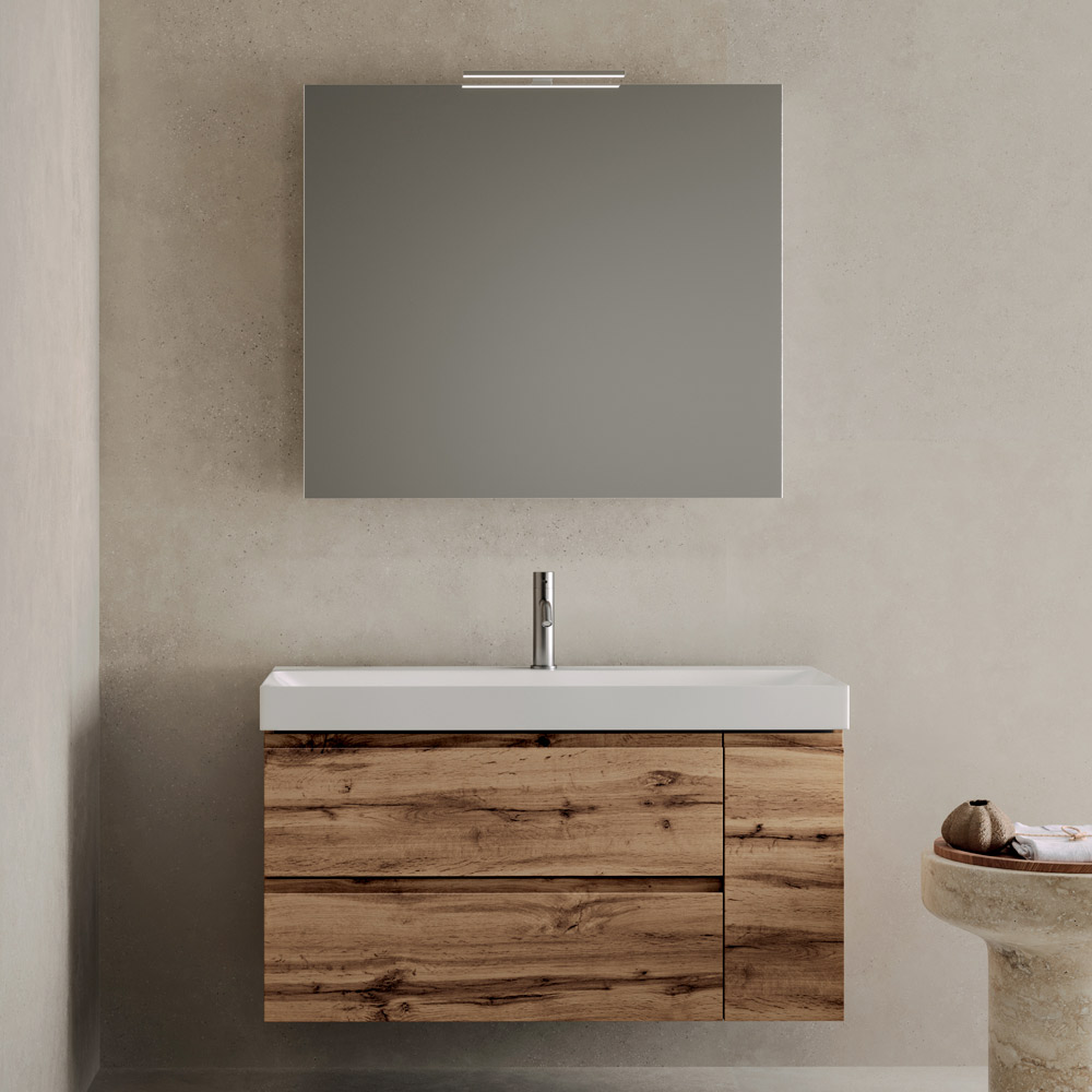 Une solution idéale pour ceux qui recherchent un meuble de salle de bains moderne en bois , capable d'allier fonctionnalité, esthétique contemporaine et matériaux de qualité dans une composition harmonieuse.