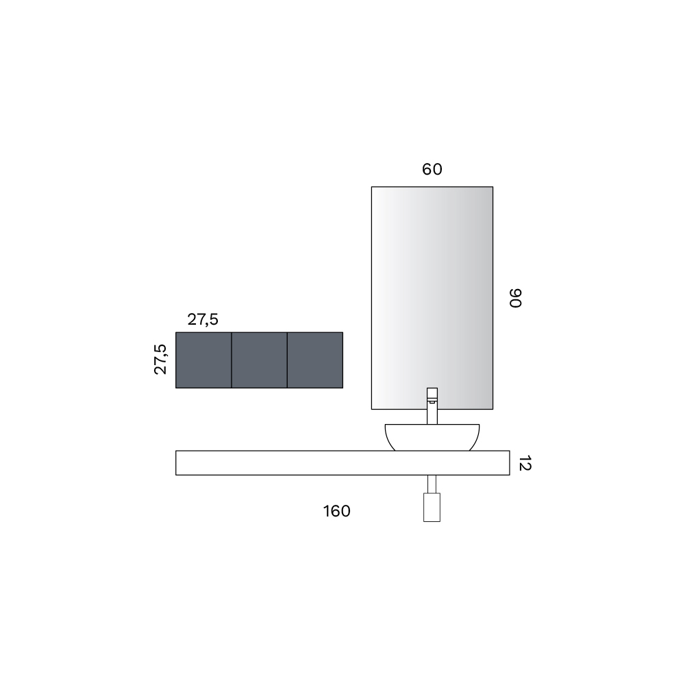 L'élément principal de la composition est le plateau d'étagère blanc mat avec supports , une solution suspendue qui apporte de la légèreté visuelle et met en valeur l'espace, créant un effet architectural moderne et élégant.