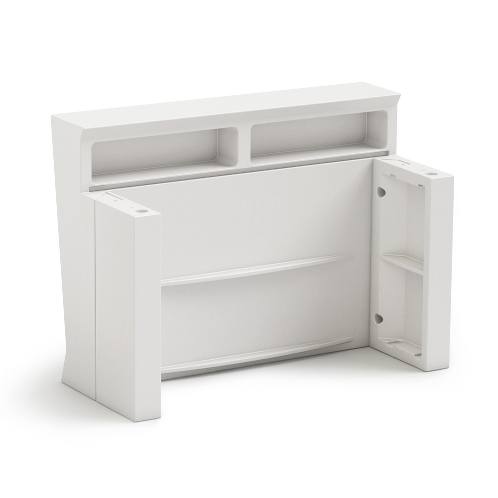 Comptoir entièrement en polyéthylène blanc/transparent , matériau recyclé. La pochette pour bouteille est en plexiglas.