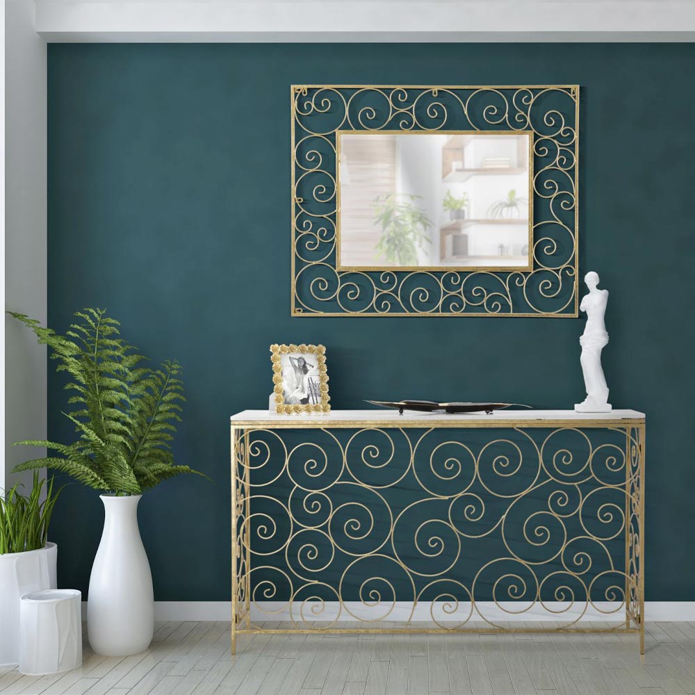 Console d'Entrée Dorée avec Structure en Fer et Plateau en Marbre - Carlotta