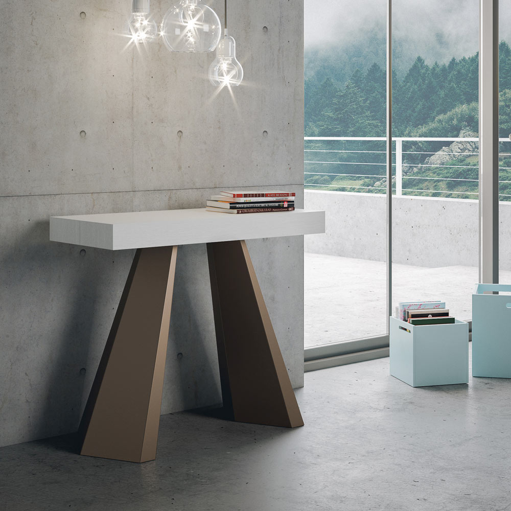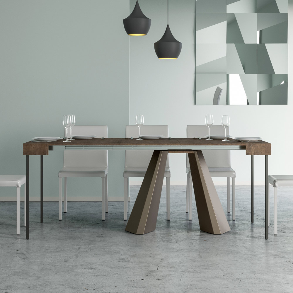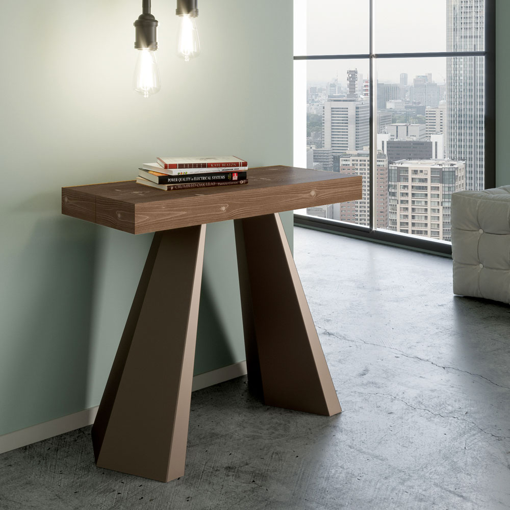 Table console à rallonge en bois plaqué et fer, Made in Italy