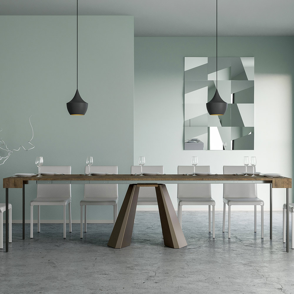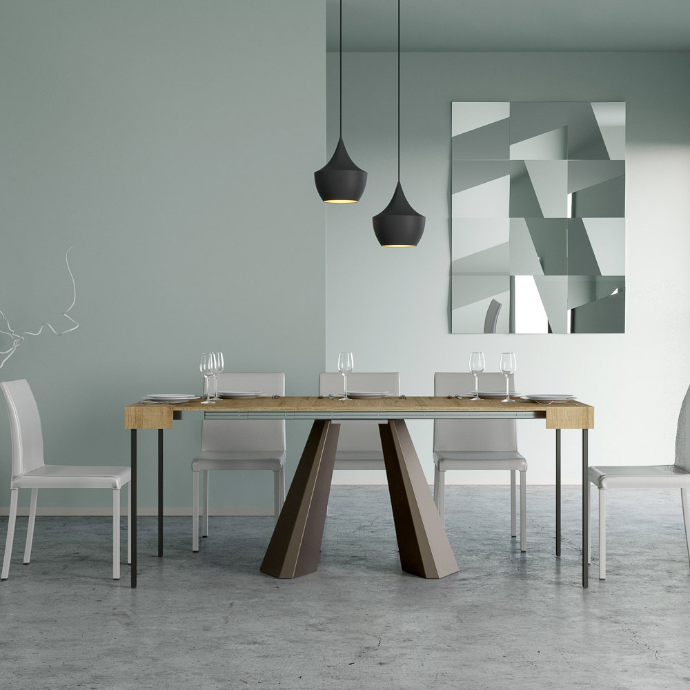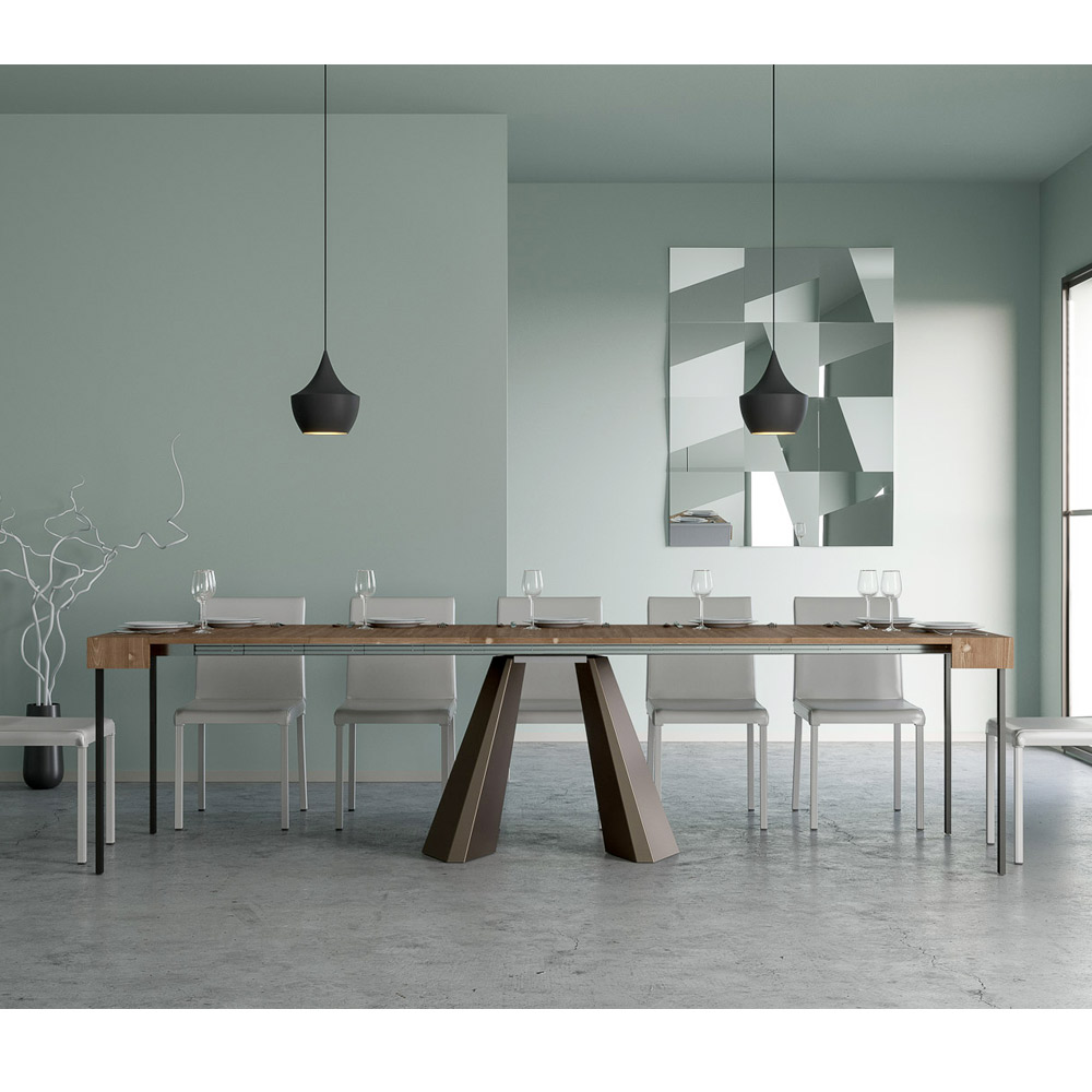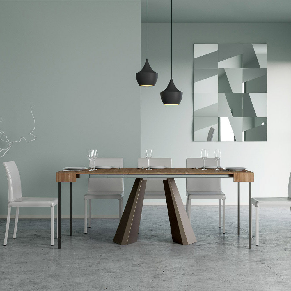 Table console à rallonge en bois plaqué et fer, Made in Italy