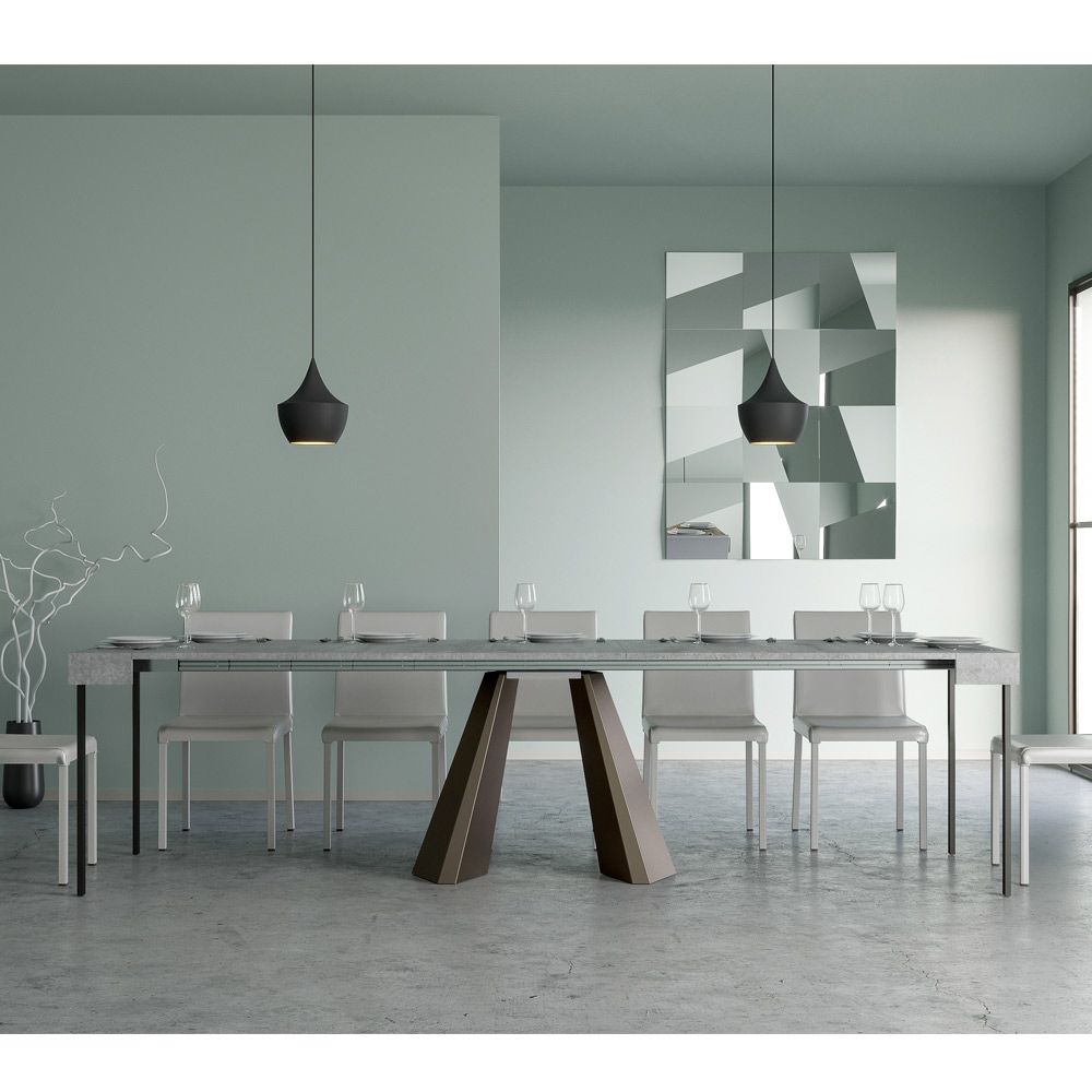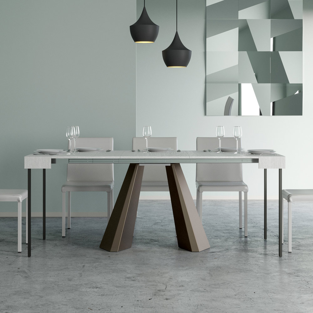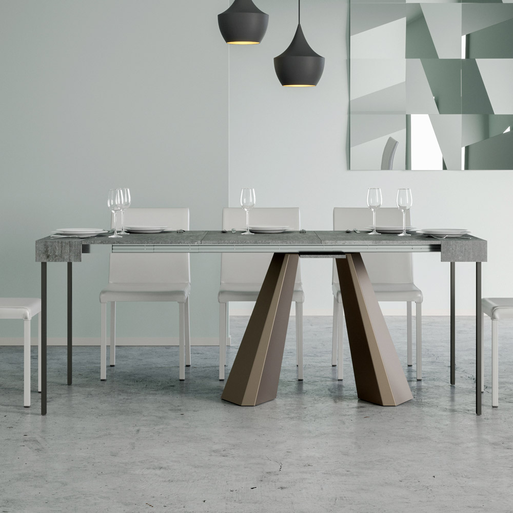 La singularité de cette table console réside dans ses pieds qui rappellent les formes géométriques de l'architecture moderne, offrant un aspect sculturel et avant-gardiste. Grâce à son système extensible, cette pièce transforme n'importe quel espace de simple à extraordinaire, s'étendant pour accueillir des moments sociaux ou pour fournir cette surface supplémentaire dont vous avez besoin.