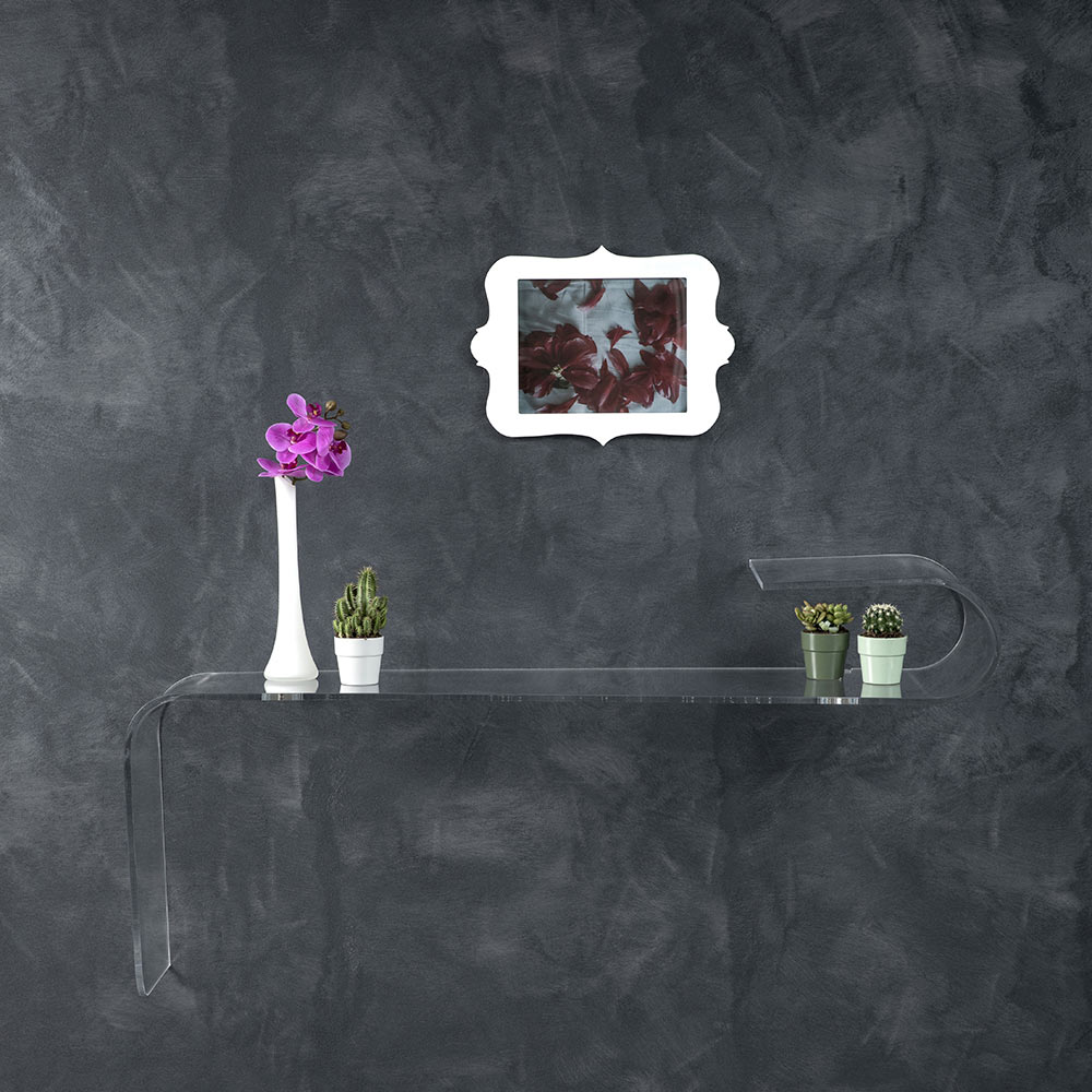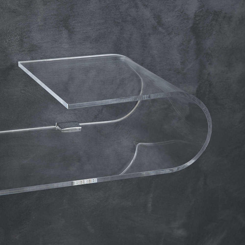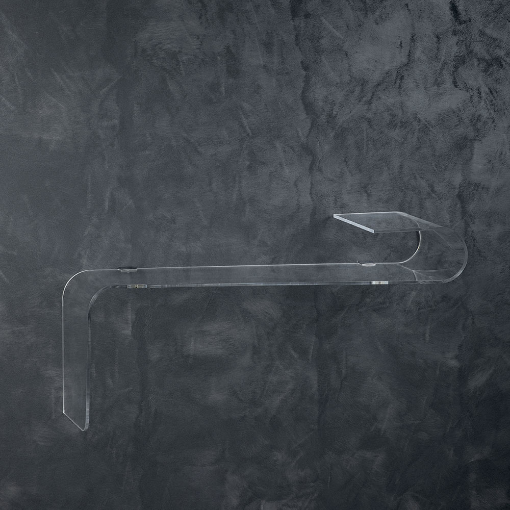 Console murale en acrylique transparent découpé au laser et plié à la main fabriqué en Italie.