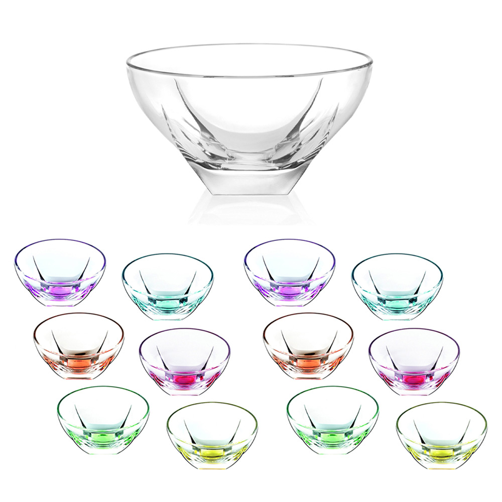 Service de coupe à dessert ou à fruits en cristal écologique transparent ou coloré, 13 pièces fabriqué en Italie.