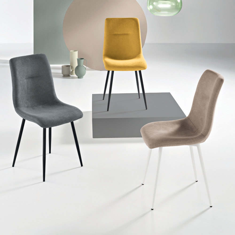 Ensemble élégant de 4 chaises modernes, conçues pour meubler avec style votre salle à manger , votre cuisine ou votre salon . L'assise en tissu au rembourrage moelleux assure confort et convivialité, tandis que la structure en métal peint garantit solidité et durabilité.