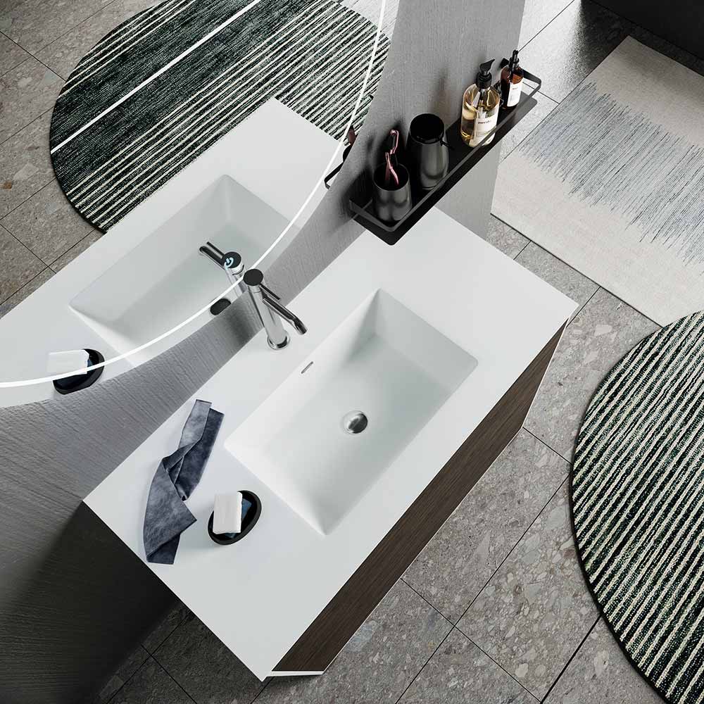 Ensemble de salle de bains avec miroir, meuble sous-vasque et vasque en résine, fabriqué en Italie - Kilos