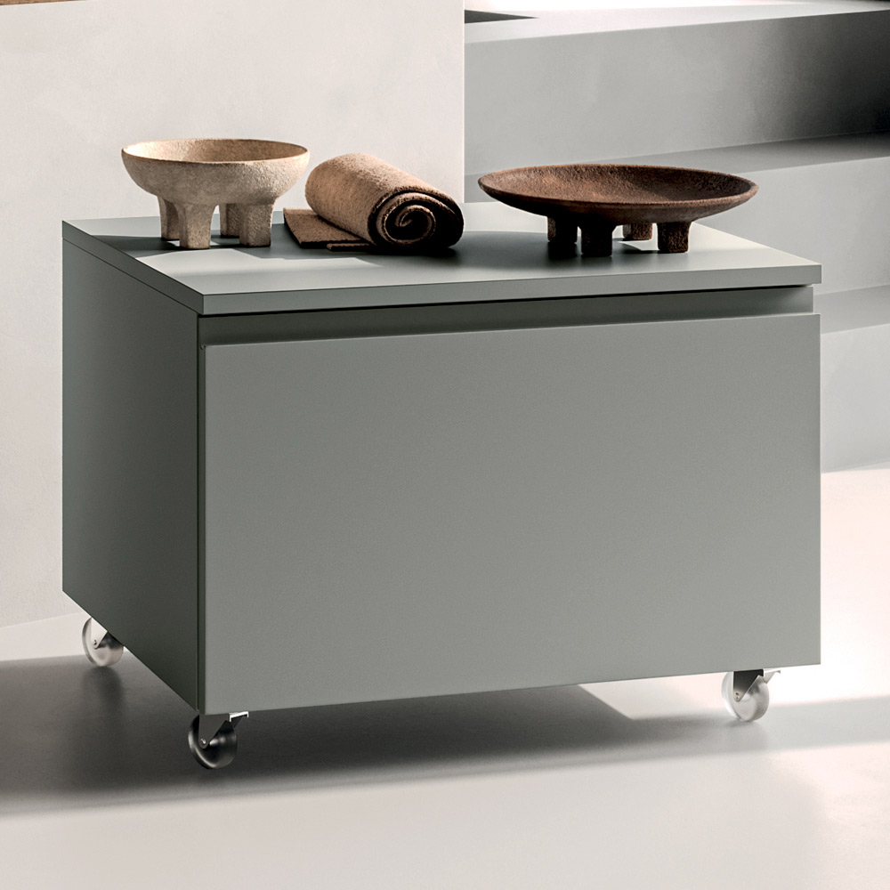 Le meuble bas avec tiroir offre un rangement pratique et bien organisé, idéal pour un espace ordonné sans compromis sur l'esthétique. Sa finition gris mat lui confère un aspect texturé et contemporain qui s'harmonise facilement avec différents styles de décoration. Grâce à ses roulettes , il se déplace aisément, ce qui le rend idéal pour les salles de bains modernes, les projets d'aménagement ou les solutions de mobilier originales.