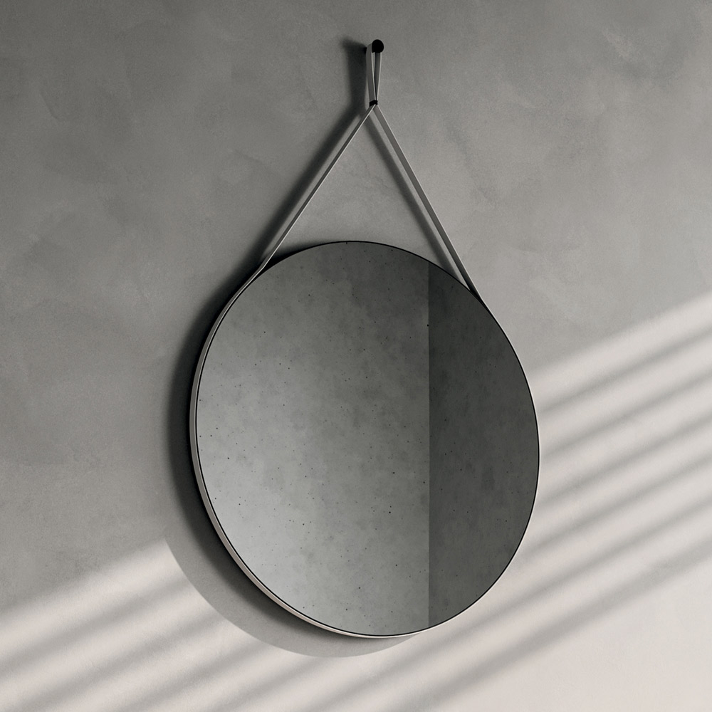 Le miroir rond complète l'ensemble d'une touche décorative discrète et raffinée, contribuant à agrandir visuellement l'espace et à créer une atmosphère lumineuse et accueillante.