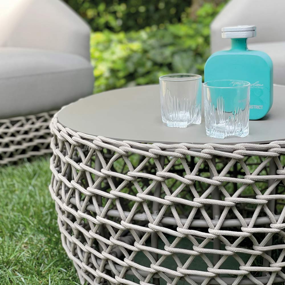 La base tissée offre une matière agréable et un contraste visuel, donnant à l'ensemble une touche d' artisanat contemporain .