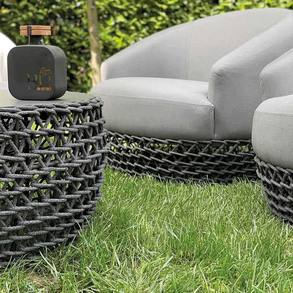 Complété par une table basse assortie présentant le même tissage décoratif, cet ensemble de salon est le choix idéal pour créer une élégante oasis de détente , parfaite pour les jardins, les terrasses et les vérandas.