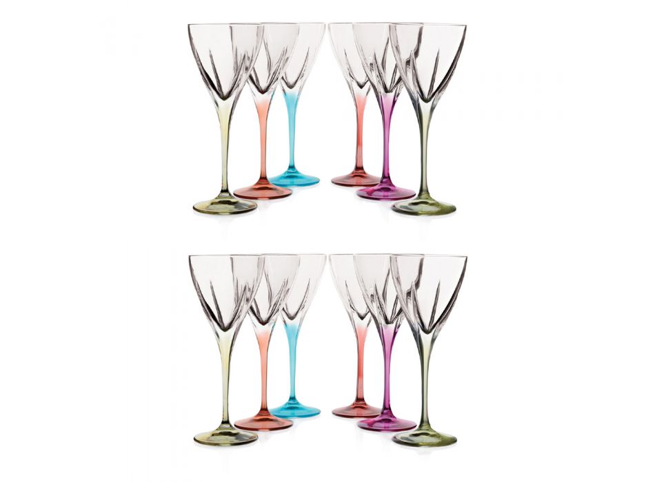 Ensemble de verres à vin en cristal écologique transparent ou coloré 12 pièces 2 tailles fabriqués en Italie.