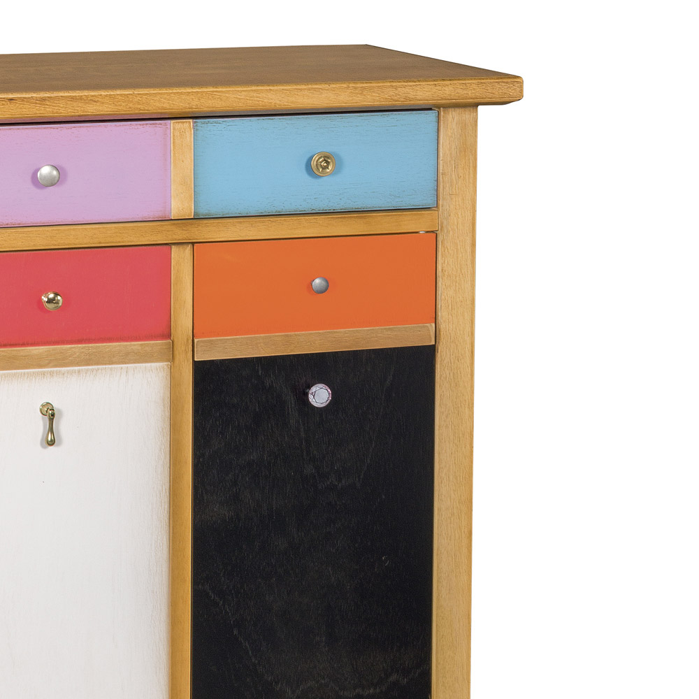 Made in Italy. Joie et enjouement sont les caractéristiques qui décrivent cet élément aux couleurs vives et aux formes particulières des poignées. Une réinterprétation originale d'un meuble d'une grande