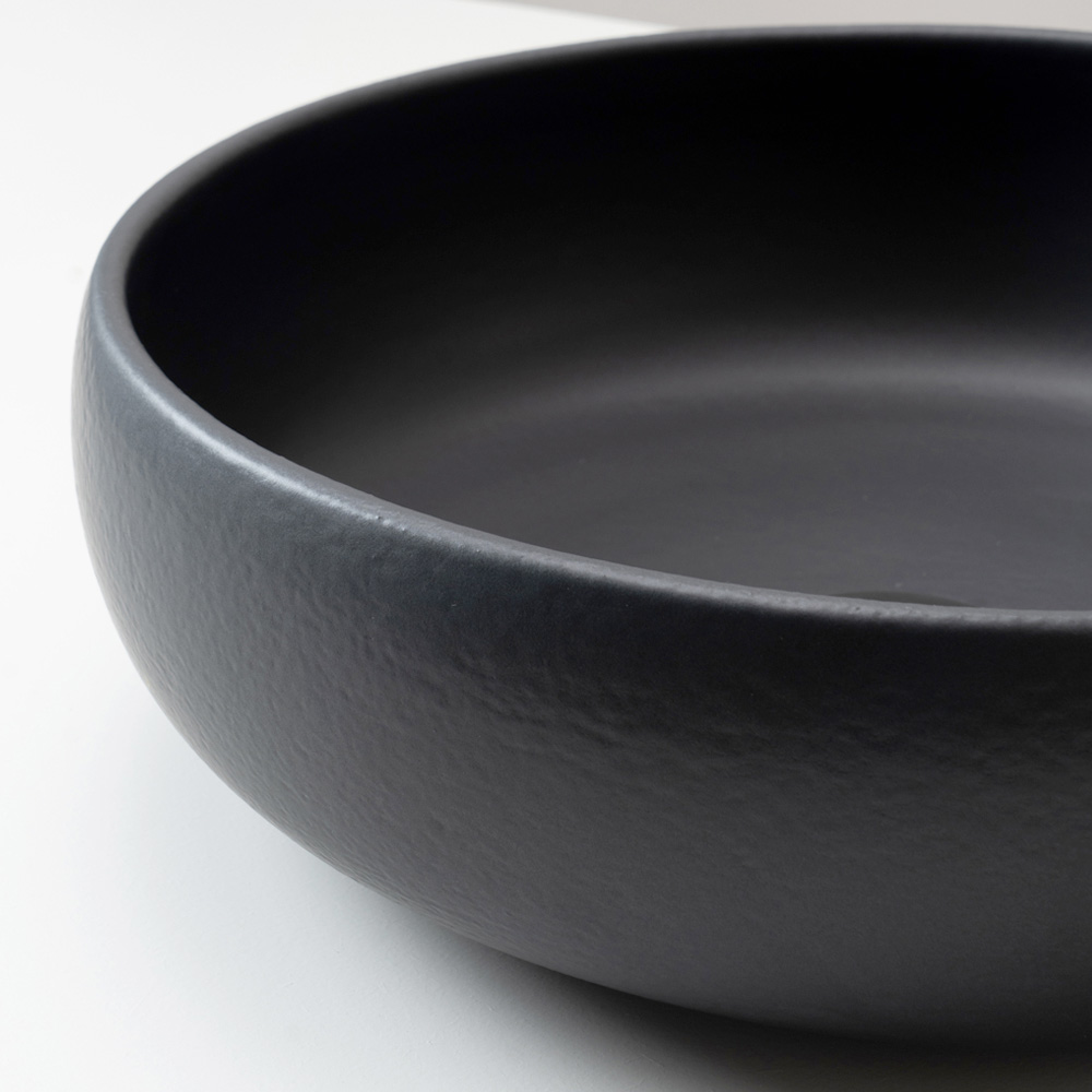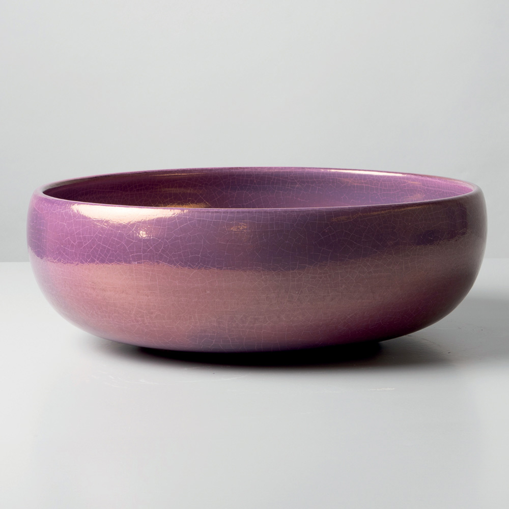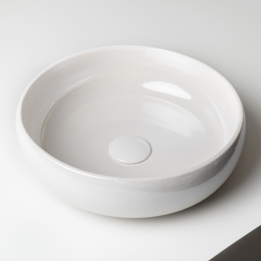 La forme essentielle et primordiale est équilibrée par des proportions harmonieuses, tandis que la surface émaillée crée des reflets vibrants et irréguliers qui rendent chaque lavabo unique. Le craquelé caractéristique du Raku souligne l'aspect texturé et artisanal du produit, le transformant en un véritable élément décoratif.