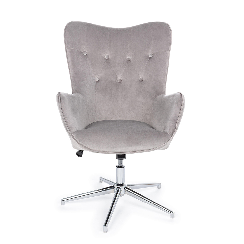 Fauteuil réglable en hauteur en acier chromé et assise effet velours, 2 finitions.