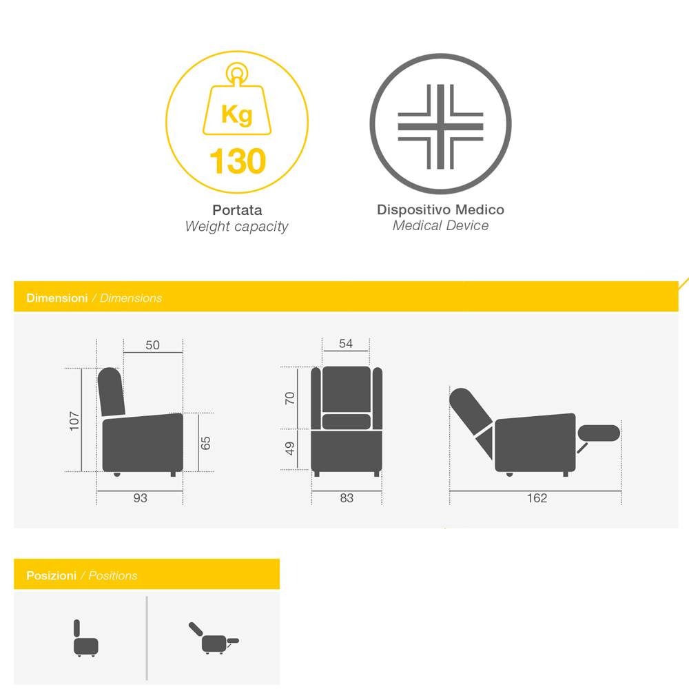 Fauteuil avec mouvement qui atteint la position détendue du dossier et du pied de lit.