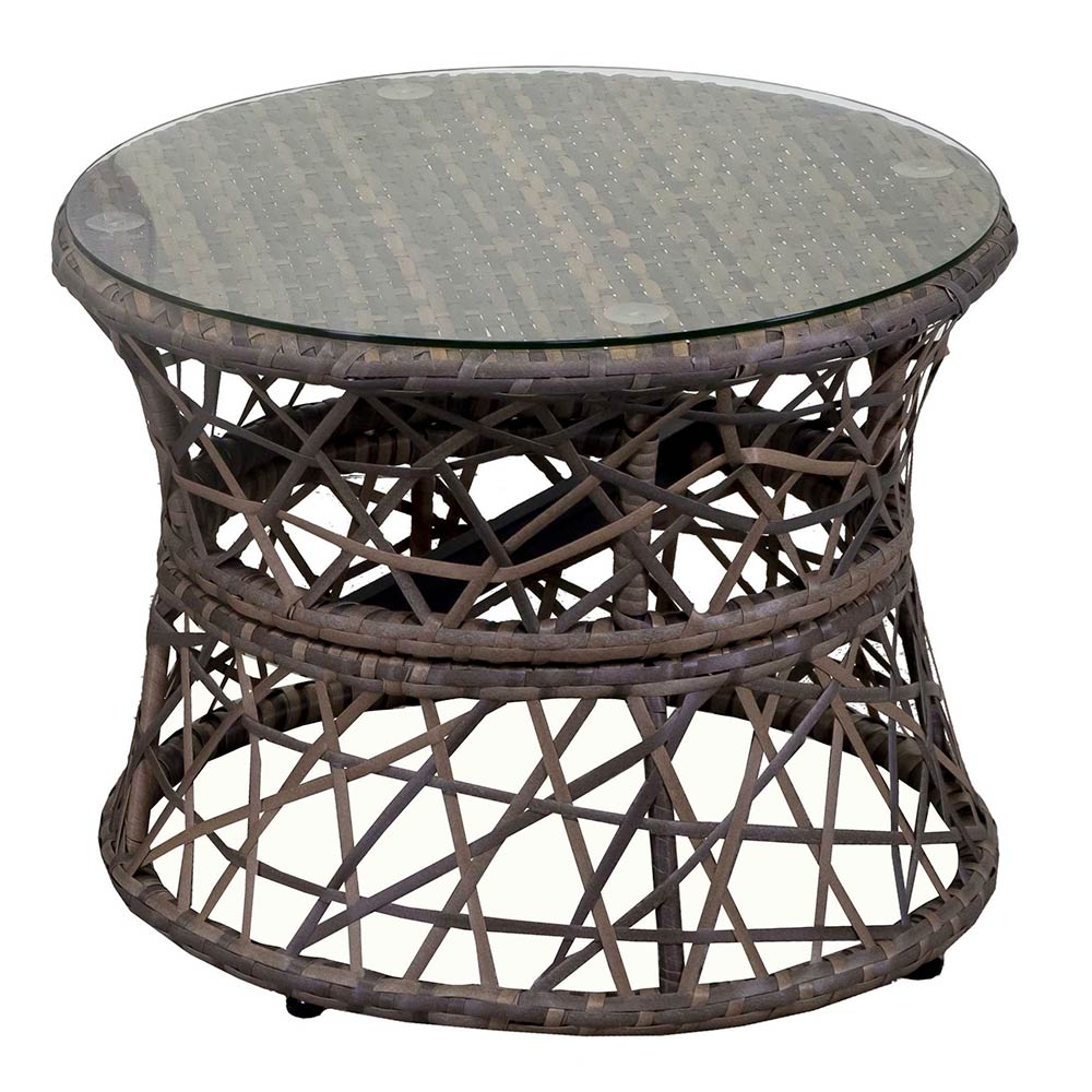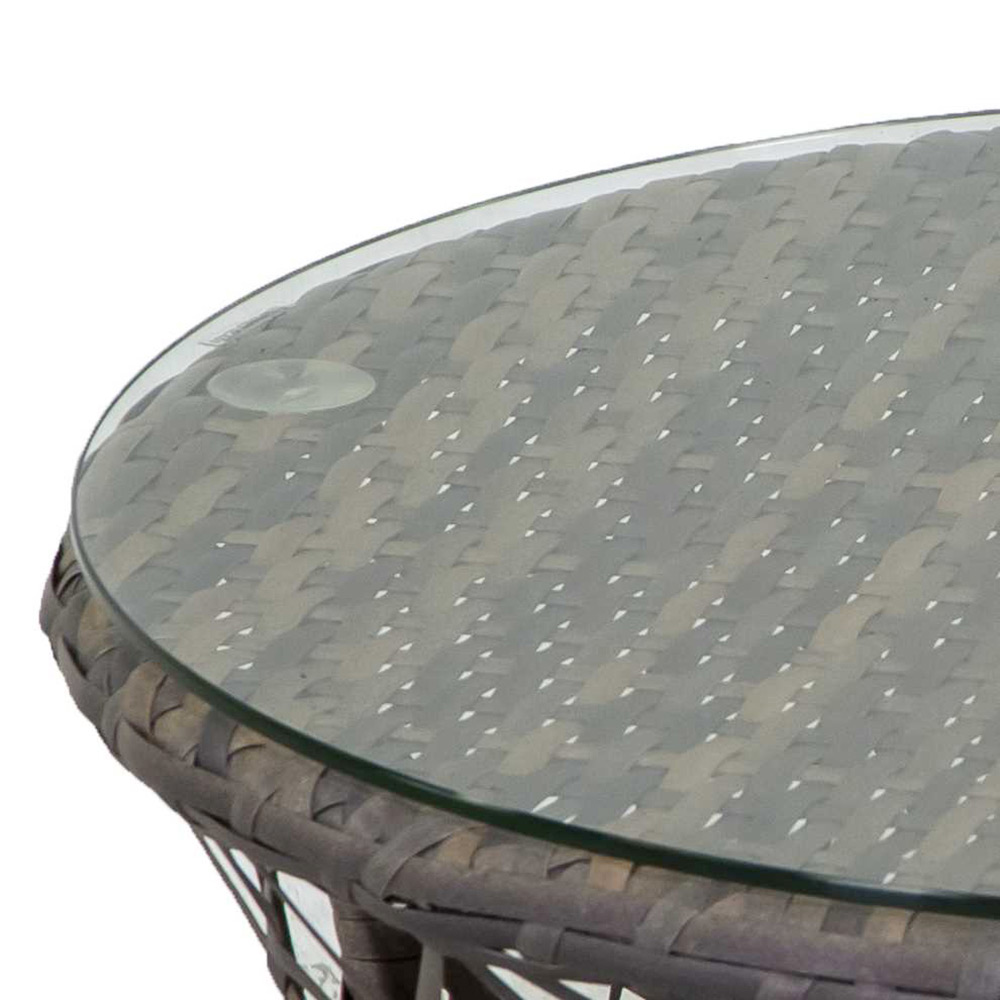 La table basse assortie est dotée d'un plateau en verre, idéal pour garder à portée de main boissons, livres ou décorations. Sa forme ronde et ses dimensions compactes la rendent polyvalente et facile à placer à côté du fauteuil ou dans n'importe quel coin de votre jardin ou terrasse.