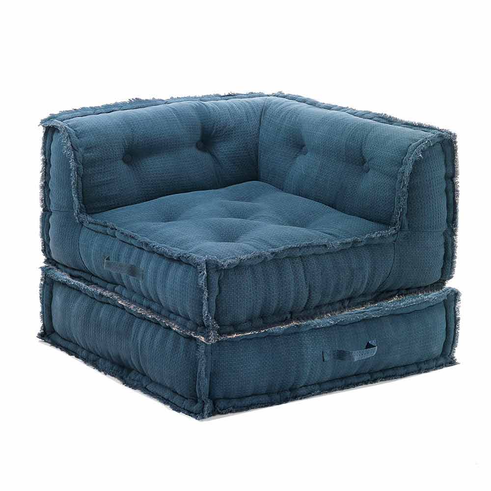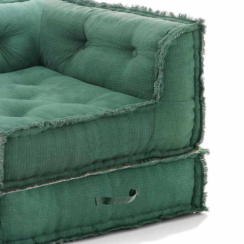 Fauteuil chaise longue d'angle au design ethnique, réalisé en coton gris, vert ou bleu.