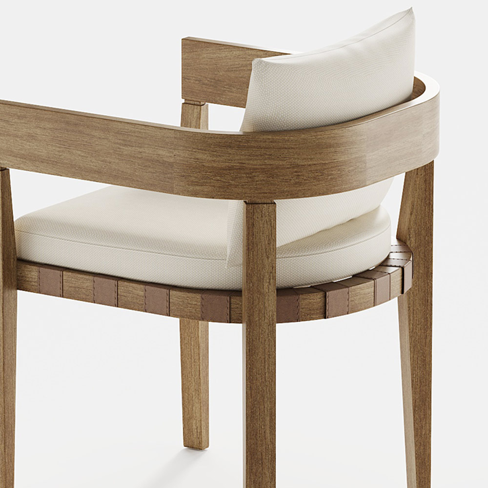 structure en bois de teck patiné. Le fauteuil est agrémenté de