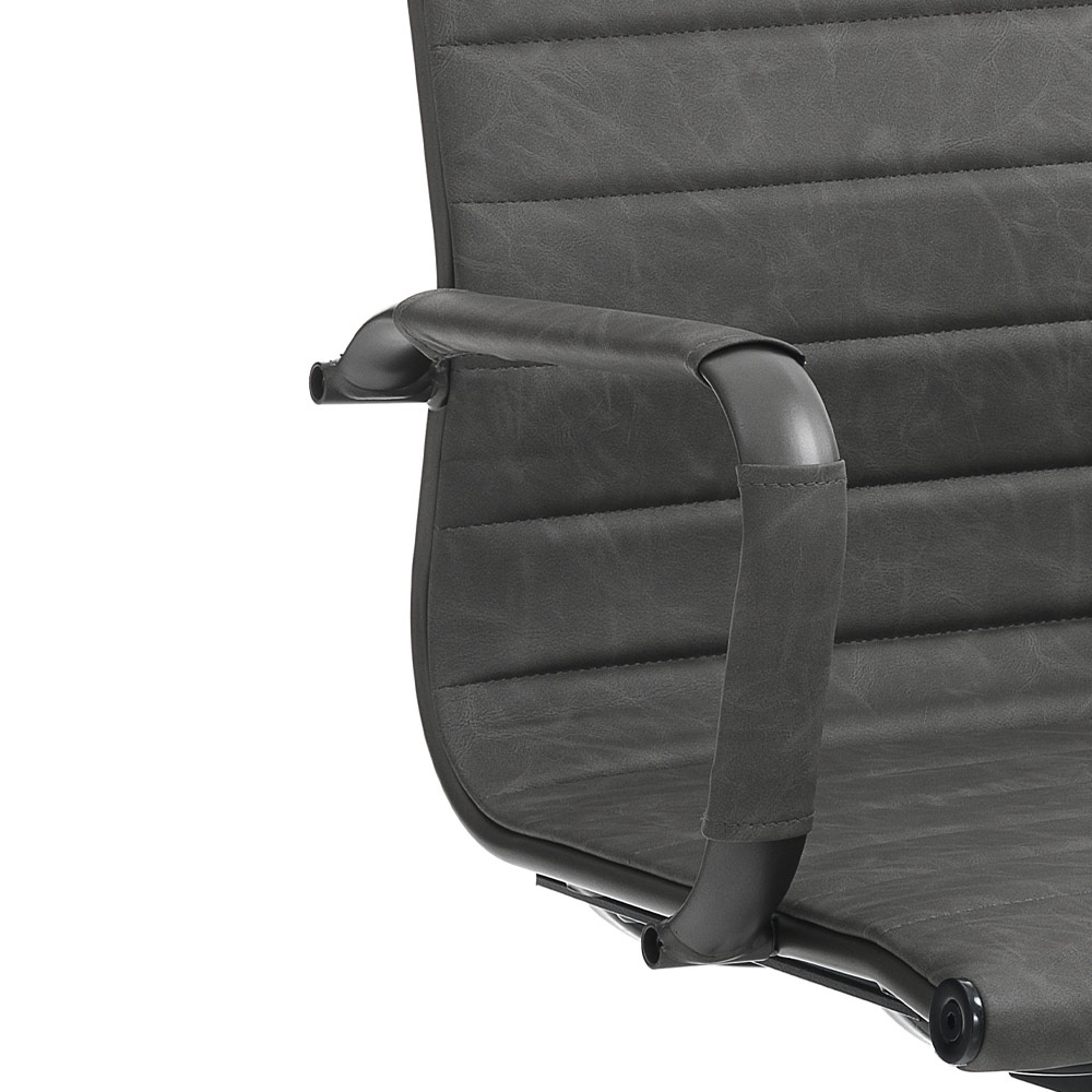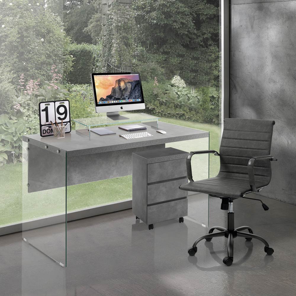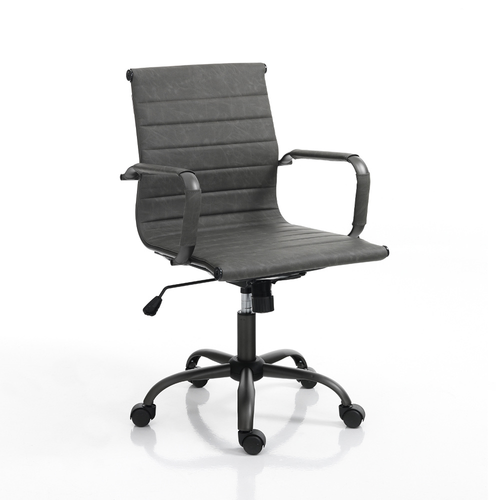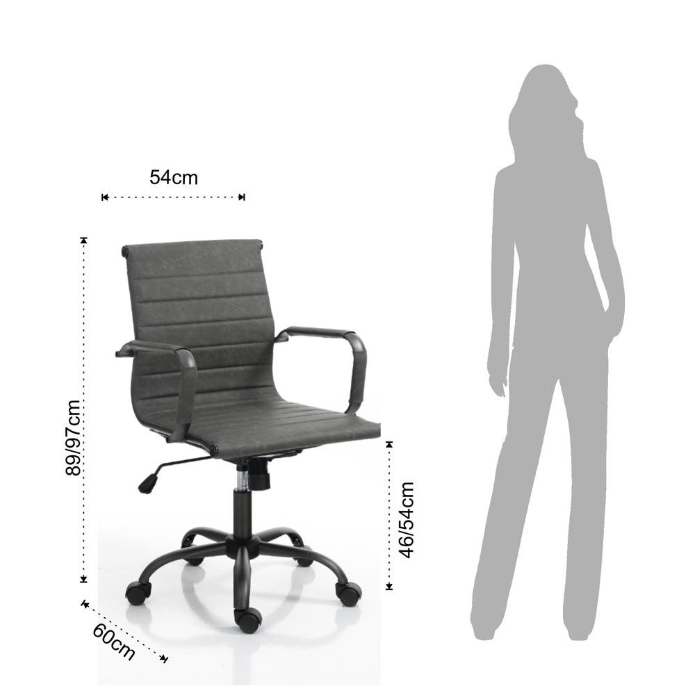 Fauteuil réalisé avec assise recouverte de cuir synthétique gris effet vieilli , structure et piètement étoile en acier peint bronze , vérin à gaz réglable en hauteur et roues pivotantes, entièrement . Cet article garantit une assise moelleuse et enveloppante , un déplacement facile grâce aux roulettes et toute la qualité de. Il est parfait pour une utilisation dans les bureaux de travail mais également à la maison, donnant à la pièce une atmosphère professionnelle et moderne.