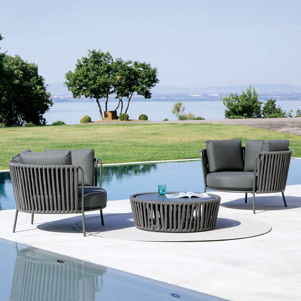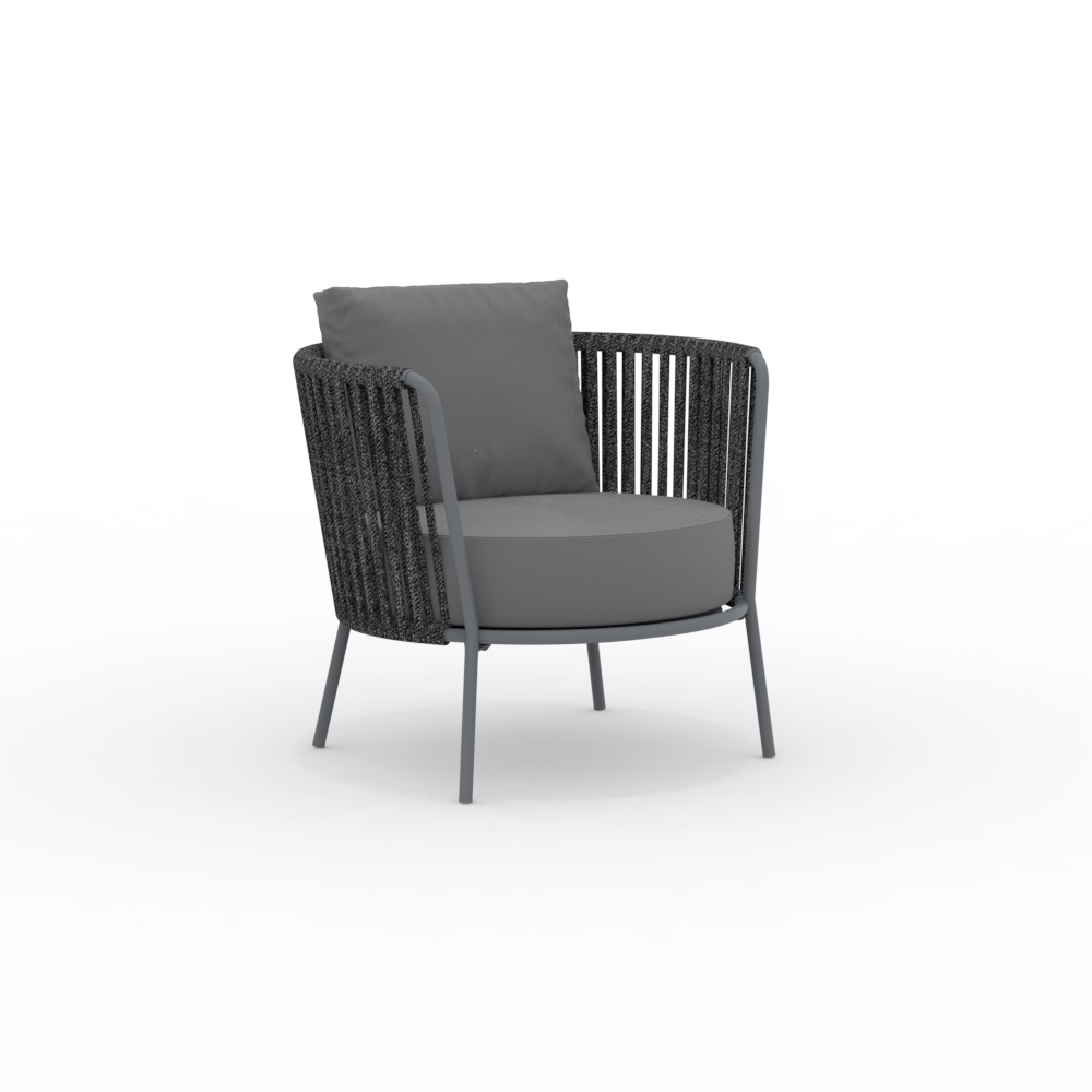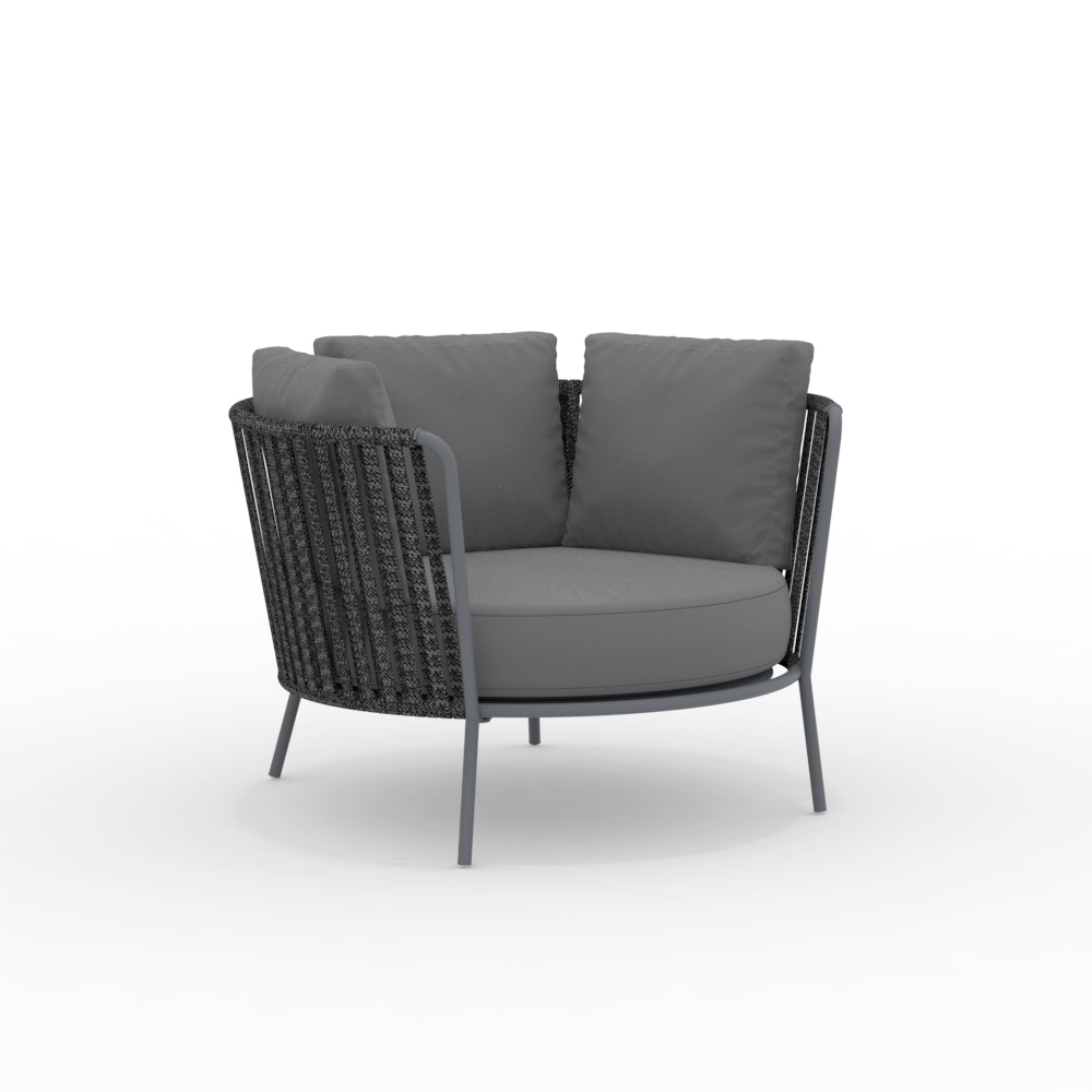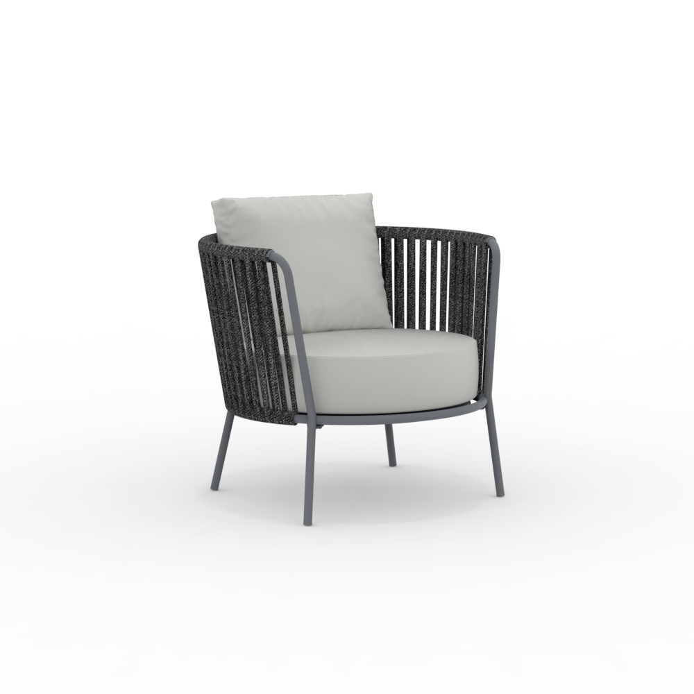 La structure en acier inoxydable garantit solidité et résistance aux intempéries, tandis que le tressage en corde apporte légèreté et raffinement, enveloppant l'assise d'un confort optimal. Son design ergonomique et ses lignes arrondies garantissent une assise agréable et relaxante.