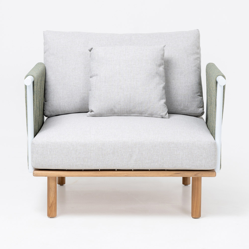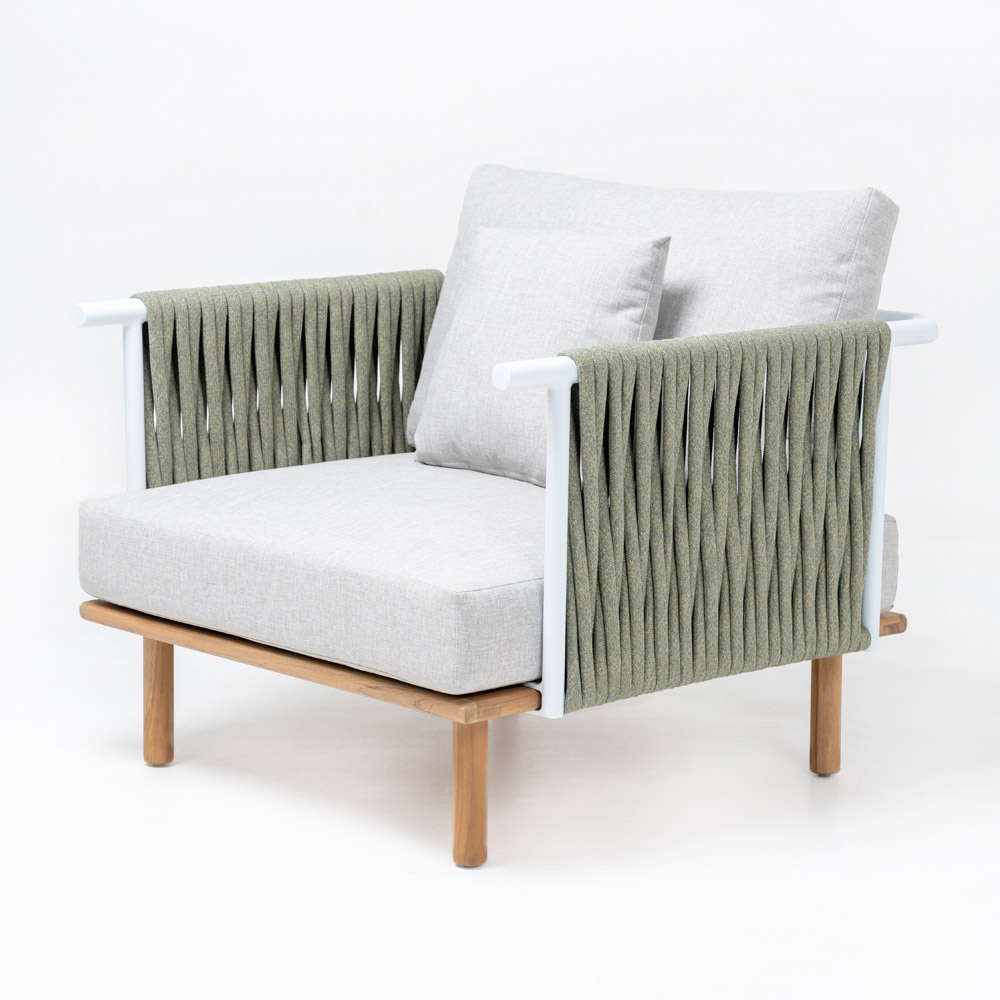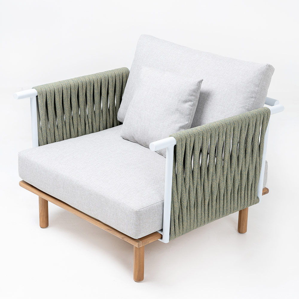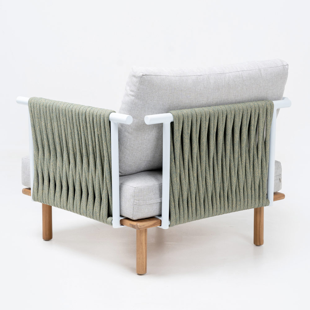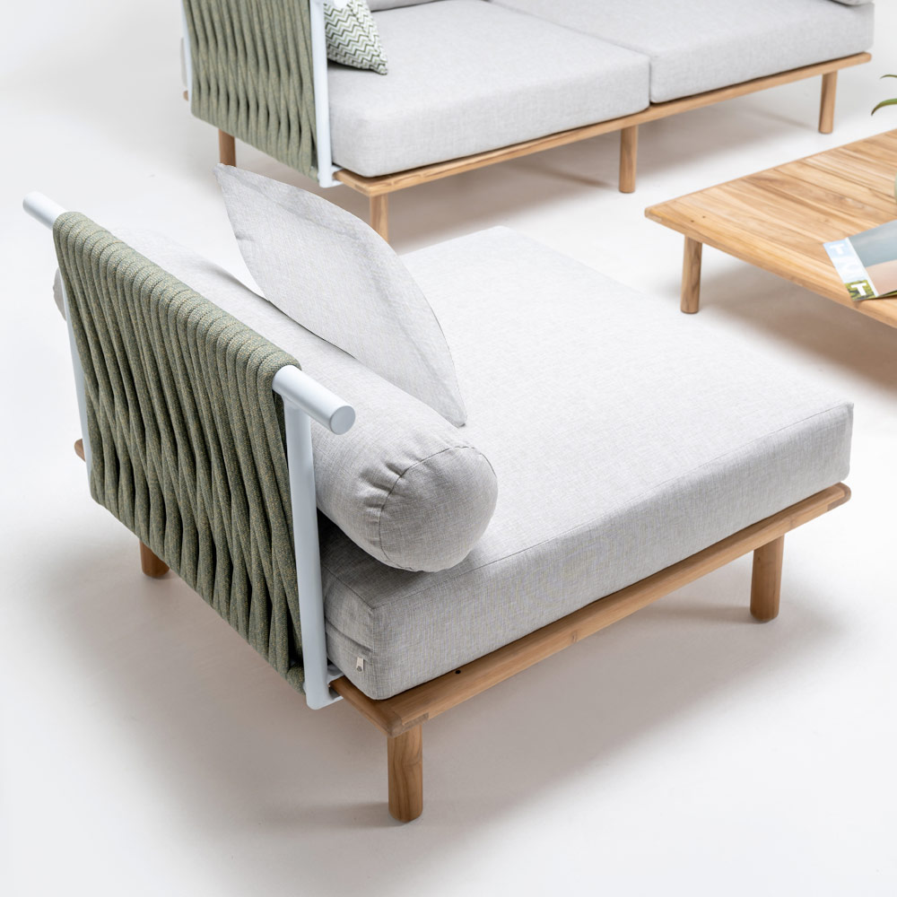 Fauteuil de jardin en teck, dossiers en aluminium et tissu et coussin en Olefin/PP ROPE