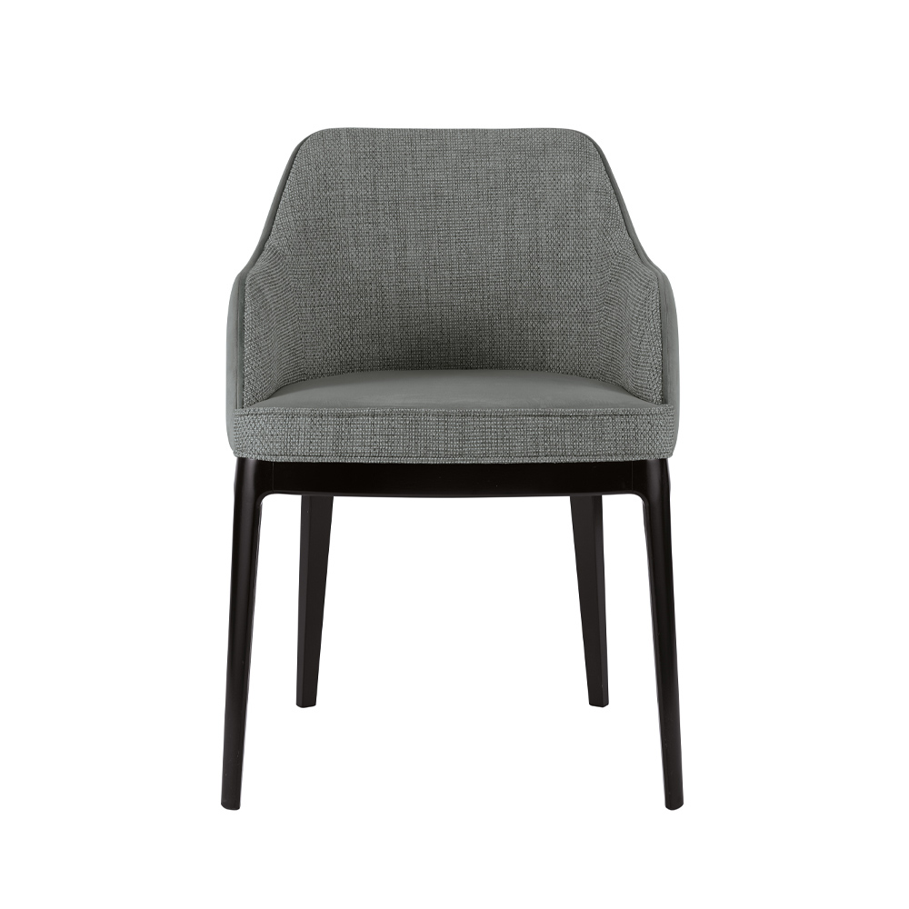 Fauteuil au design moderne avec coqueen bois de hêtre massif et assise rembourrée en tissu. Un complément d'ameublement qui s'adapte facilement à n'importe quel contexte stylistique dans lequel il s'insère, contribuant à créer une atmosphère unique et élégante . La légèreté esthétique qui caractérise son design le rend parfait pour compléter des espaces domestiques tels que des salles à manger et des cuisines mais aussi des espaces contract tels que des bars et des restaurants avec de la personnalité grâce à ses formes simples et raffinées . Le produit fait partie de la nouvelle gamme de produits modernes fabriqués dans le respect de la nature. Confort maximum garanti sur ce fauteuil composé d'une coque en bois massif finition anthracite et d'une assise recouverte de tissu dans différentes variations de couleurs.