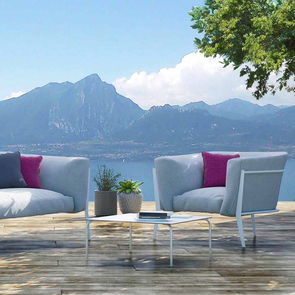 Fauteuil d'extérieur moderne, structure en aluminium et tissu amovible, design made in Italy.
