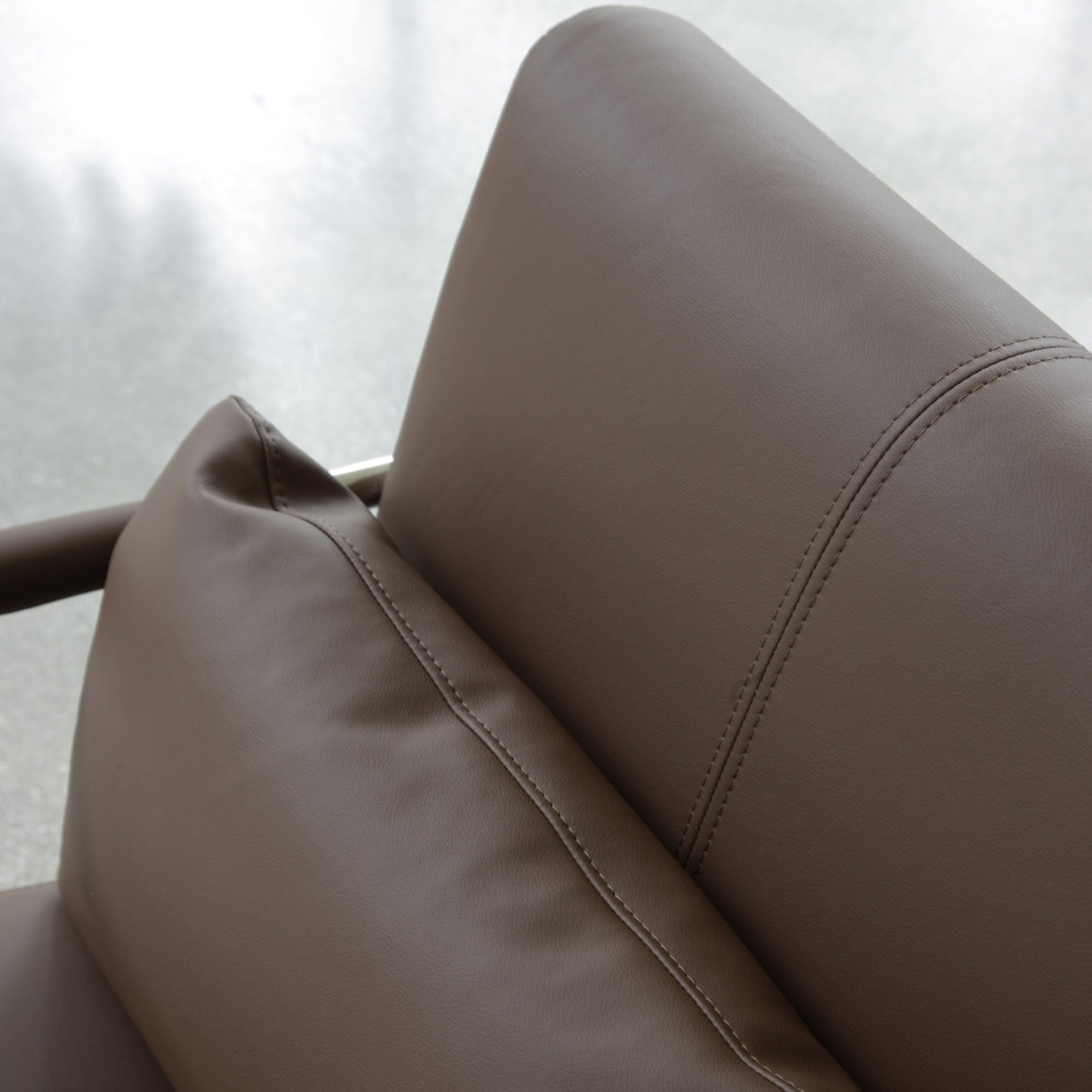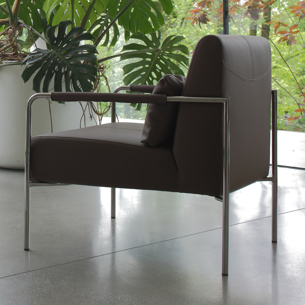 Fauteuil de salon réalisé avec pieds et accoudoirs en métal chromé , assise recouverte en éco-cuir et coutures assorties , entièrement Made in Italy. Fauteuil au design confortable et moderne. Caractérisé par une assise large qui comprend un coussin lombaire doux et enveloppant, offrant un confort exclusif. La structure en métal comprend des accoudoirs et des pieds de fauteuil légèrement rembourrés. Les coutures assorties contribuent à créer une apparence esthétique propre et coordonnée. Cette conception offre un équilibre entre fonctionnalité et style, rendant ce fauteuil adapté à divers environnements, tant résidentiels que commerciaux.