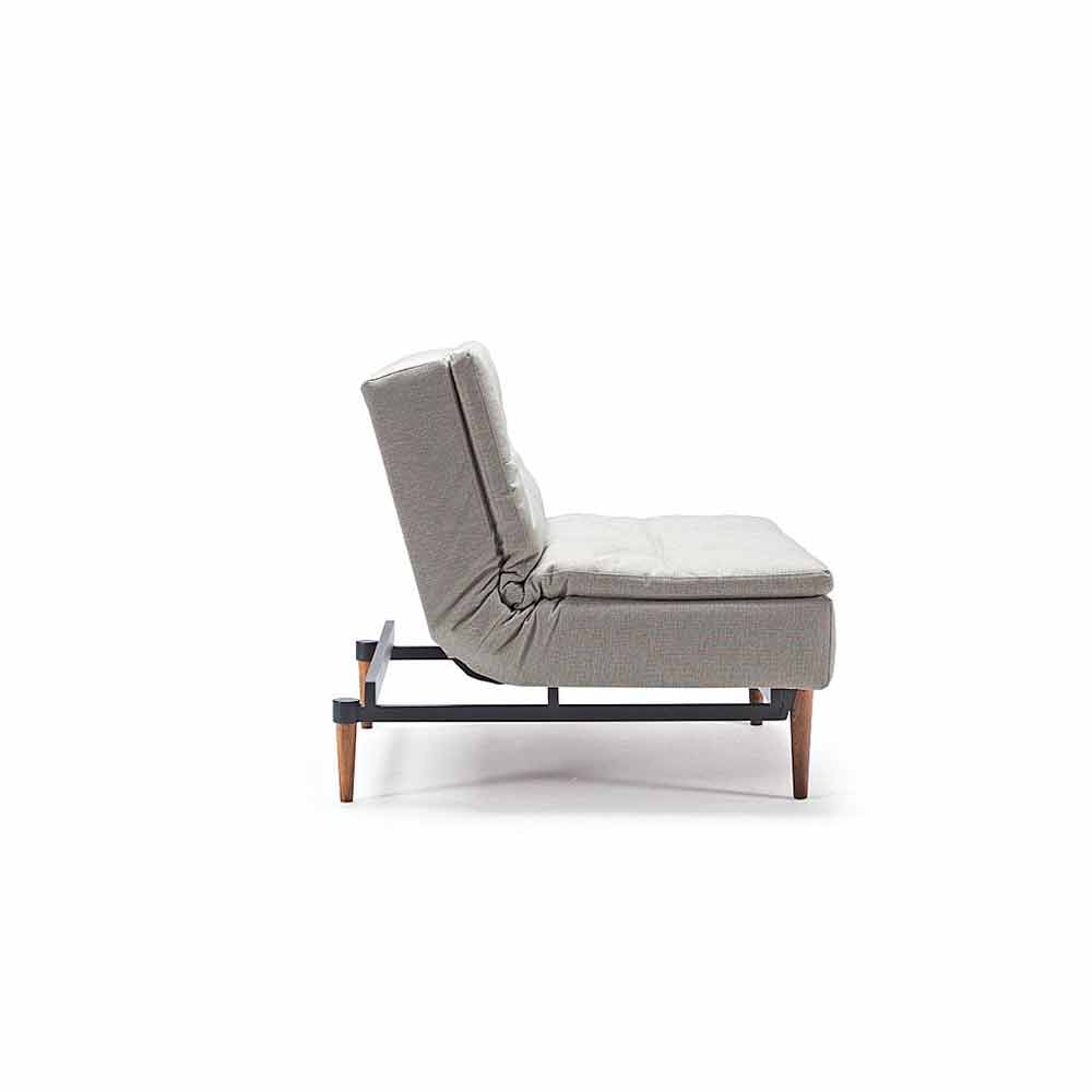 Fauteuil lit design scandinave et de style nordique, réglable en 3 positions Dublexo by Innovation , pieds en bois foncé, structure en acier noir mat. Dublexo présente un design moderne et innovant, mais en même temps classique. Le dossier est divisé en deux parties indépendantes réglables sur 3 positions : canapé, détente et lit. En combinaison avec le fauteuil, vous obtenez plusieurs possibilités, par ex. chaise longue.