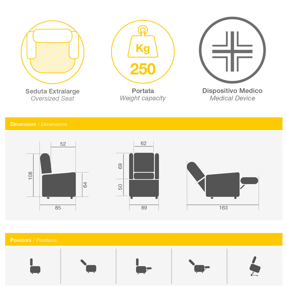 Grâce à la technologie Lift and Relax, il est possible d'accompagner les mouvements en position assise et en se levant. La télécommande vous permet de régler le dossier et le repose-pieds (mouvement indépendant l'un de l'autre) selon vos besoins de confort.