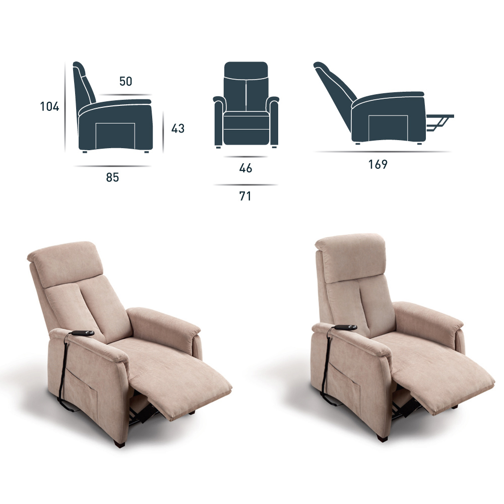 Fauteuil releveur motorisé Via Venezia avec 2 moteurs, entièrement fabriqué en Italie.