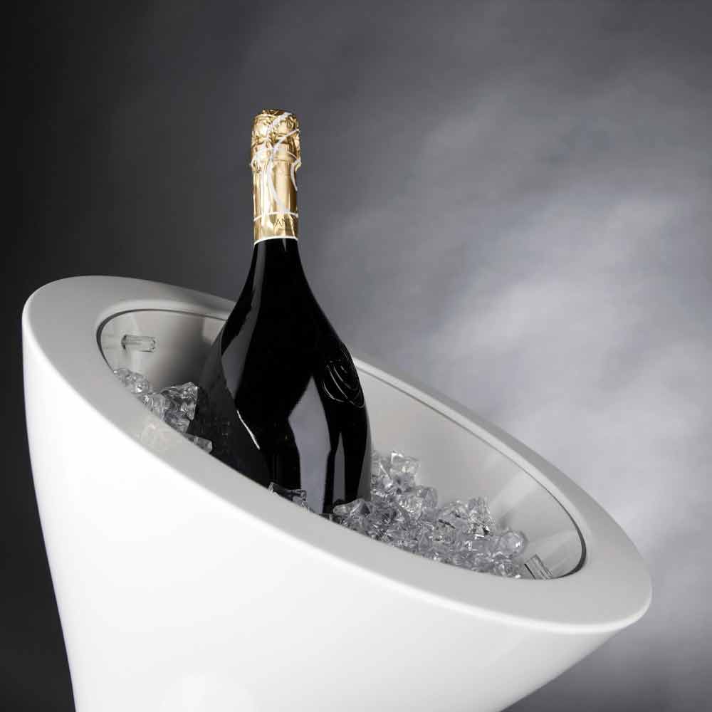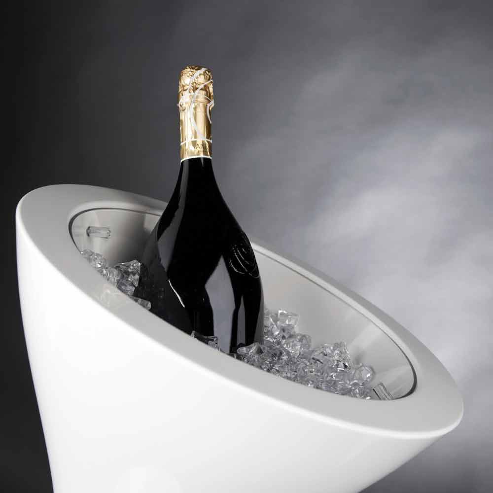 Frappeuse de sol entièrement fabriquée en Italie en polyéthylène blanc équipée d'un porte-bouteille pour glace. Du traitement 100% Made in Italy et de l'utilisation de matières premières innovantes, naît un accessoire d'ameublement extrêmement fonctionnel, capable de maintenir la température des vins à offrir au froid tout en enrichissant l'ameublement environnant. Idéal pour l'ameublement des espaces contract mais aussi des espaces domestiques dans lesquels recréer un petit bar intime, cet accessoire d'ameublement est à la fois moderne et efficace, offrant une solution parfaite pour compléter n'importe quelle situation stylistique de manière harmonieuse et impeccable pour un résultat original et discret. en même temps. Pour augmenter sa valeur, le traitement 100% Made in Italy ainsi que l'utilisation de matières premières de qualité augmentent sa valeur et garantissent un produit solide, résistant et d'une excellente durabilité .