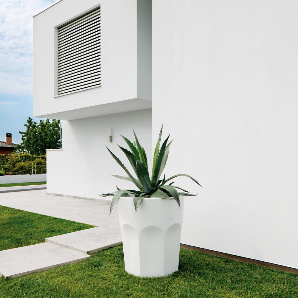 Ce vase décoratif combine design et praticité grâce à sa forme de verre. L'article est entièrement fabriqué en Italie en polyéthylène, un matériau caractérisé par une excellente résistance au soleil, aux chocs et à la chaleur.
