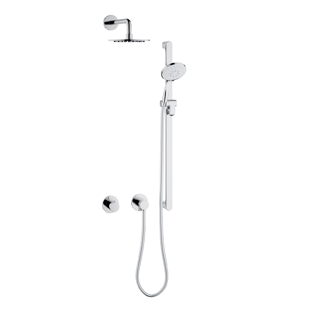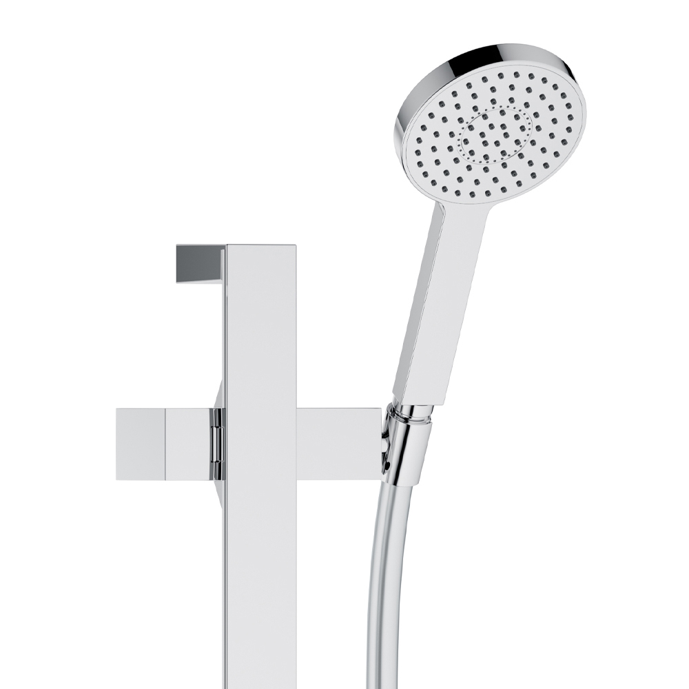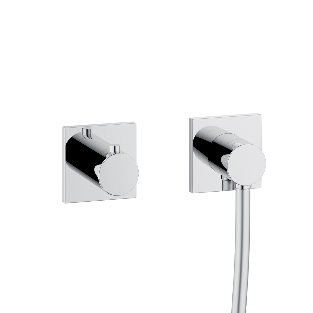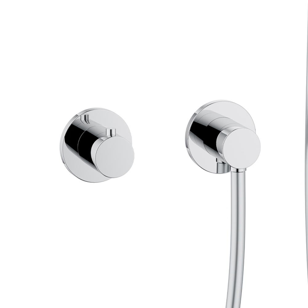 Cette cabine de douche intérieure à installation bidirectionnelle avec mitigeur monocommande, raccord de tuyau, support de douchette et pomme de douche a un design simple et minimal avec un choix de rosace ronde ou carrée et est entièrement réalisée en laiton chromé . Le résultat est un petit module caractérisé par un concentré intelligent de technologie innovante dans un design radical et minimaliste : le mélangeur et le raccord de tuyau sont connectés de manière unique pour un effort d'installation minimal et un confort fonctionnel maximal.